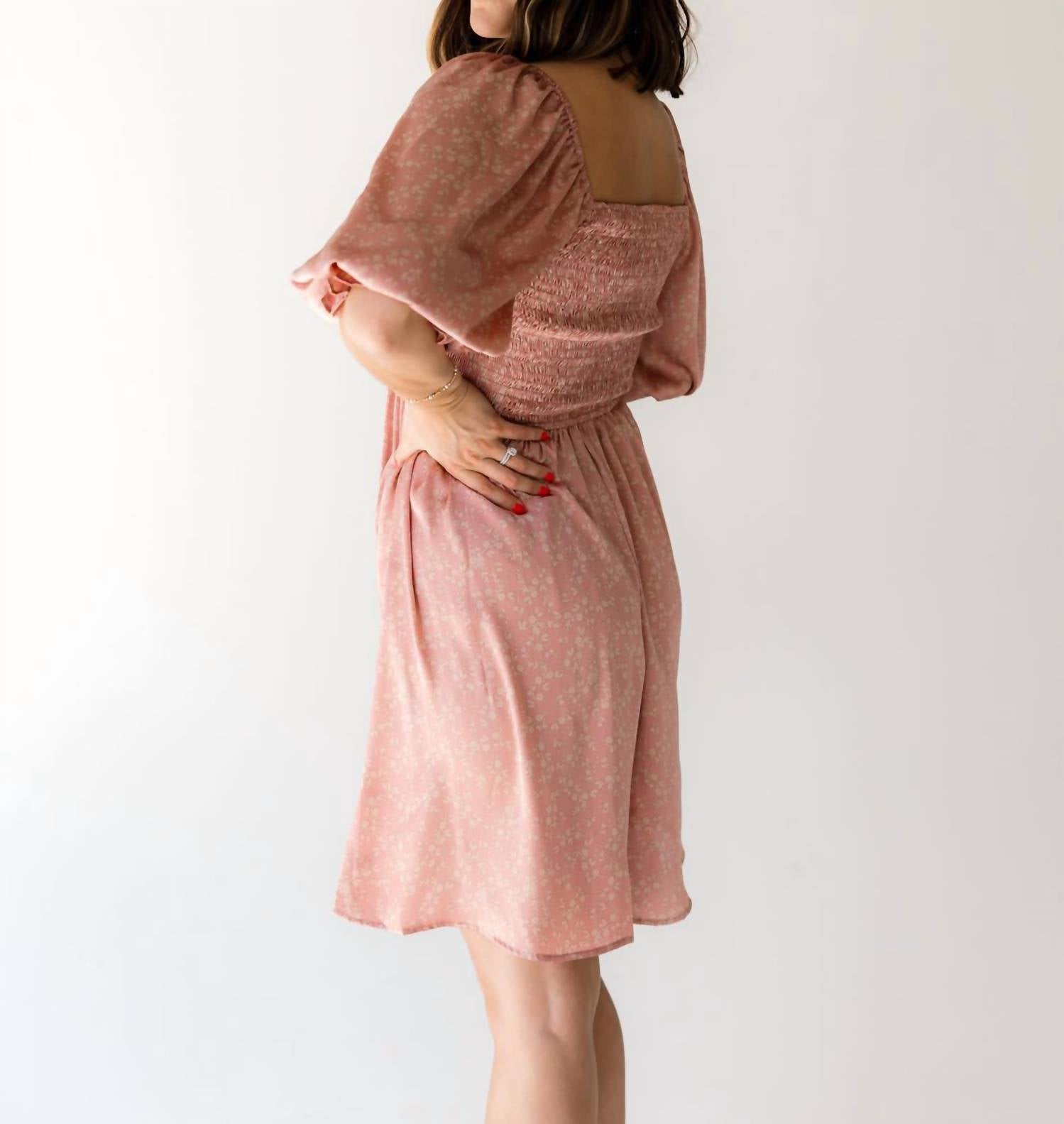 A short and breezy dress for those warmer days. Embrace autumn with the Zuri Floral Babydoll Dress by Mittoshop, a delightful piece designed in Dusty Mauve. This women's mini dress highlights elbow-length puff sleeves and a textured floral print, exuding a minimalist, vacation-ready vibe. Crafted for a fit-and-flare silhouette, it features a squareneck and a comfortable pull-on closure. Ideal for summer outings, this dress is easy to style for any casual or cozy adventure. Model is wearing a size small (5'4" height, 33.5" chest, 27" waist, 38" hip).