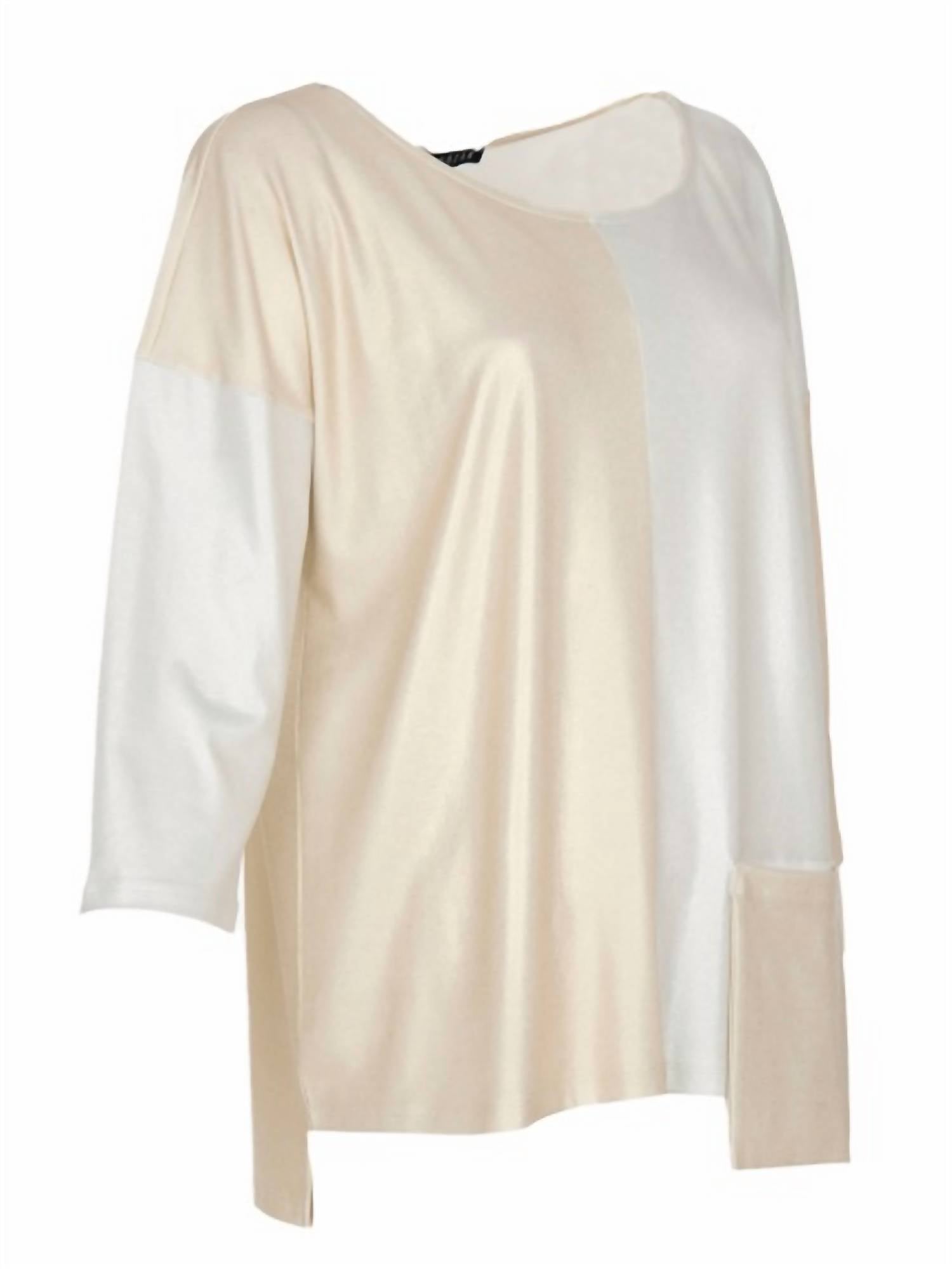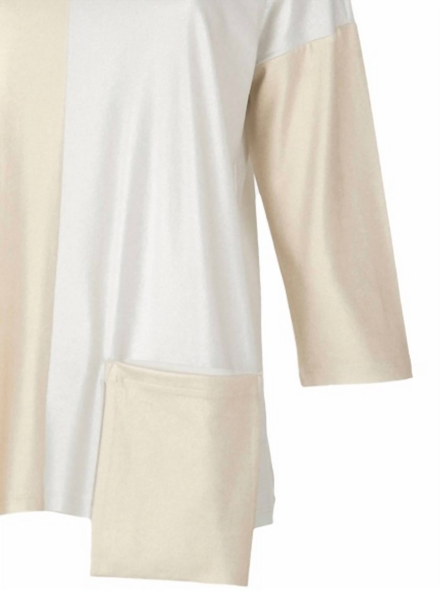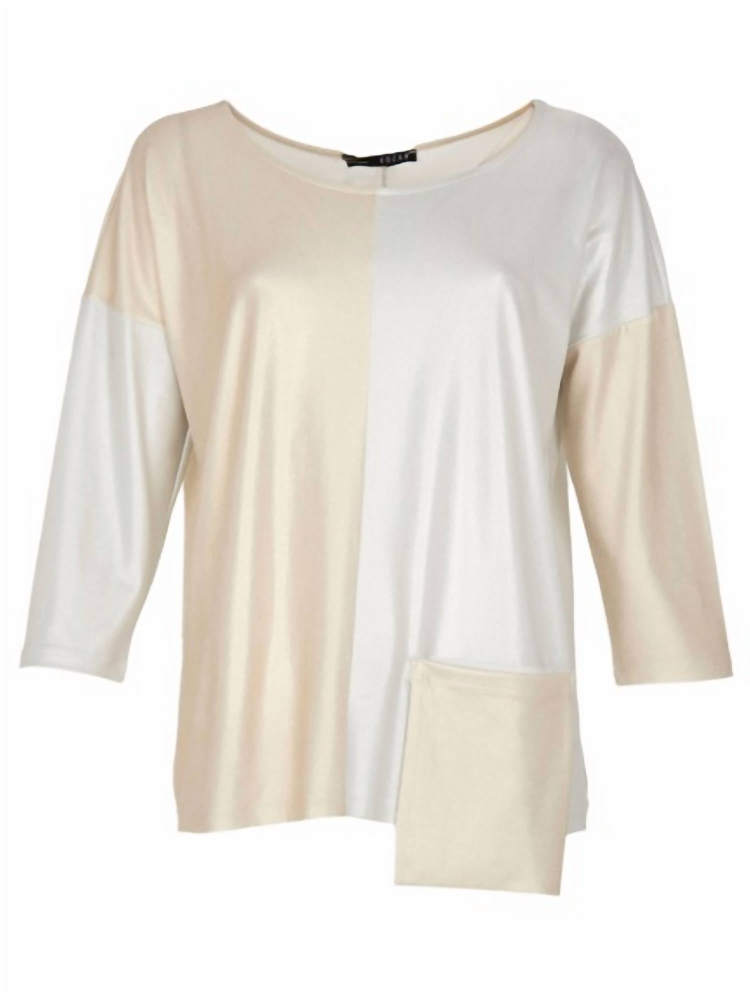A timeless blouse that will never go out of style. Meet the KOZAN Dwight Top in Pearly Gold, a blend of sophistication and comfort with its three-quarter sleeves and a luxurious polyblend finish. This patterned blouse features a scoop neckline and a front pocket detail, enhancing its opulent appeal. Crafted from 95% Polyester and 5% Spandex, this piece offers a pull-on closure for effortless wear. Care is simple: machine wash cold, avoid bleach, and lay flat to dry or opt for dry cleaning. Size XL measures 40" bust and 27" length.