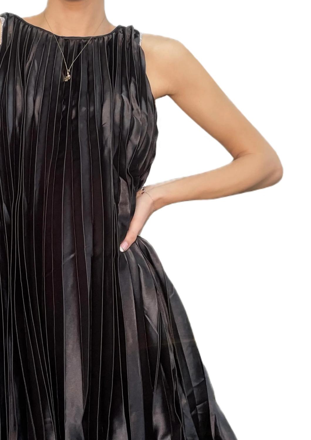 The perfect mini dress for those warmer months. The Madly In Love Accordion Pleated Dress by By Together is a chic addition to your wardrobe, ideal for any occasion. This sleeveless mini dress in classic black features a round neck design with a back slit zipper detail for easy wear. Crafted from 97% Polyester and 3% Spandex, it includes a polyester lining and is made in China. Closure Type: Zipper. Care: Hand wash.