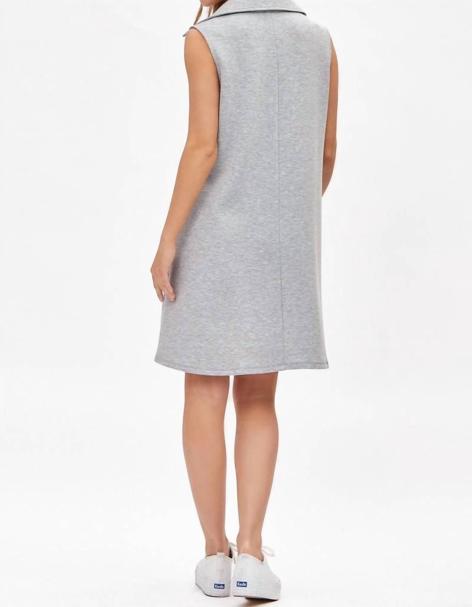 The perfect mini dress for those warmer months. Introducing the Cruise Dress by Dear Scarlett, a sleeveless masterpiece in elegant Heather Gray. Crafted from 96% Polyester and 4% Spandex, this mini dress features a timeless A-line silhouette for a flattering fit. The textured scuba modal fabric provides unmatched comfort and a contemporary finish, complete with a chic collar detail. Closure type: Pull on. This dress is perfect for minimalist style lovers and is ideal for holiday parties or any spring occasion.