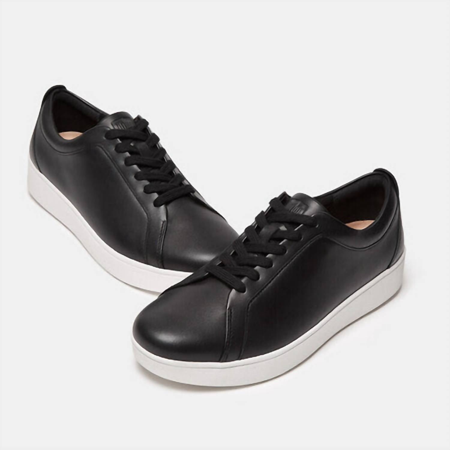 Get your daily steps in with these adorable sneakers. Step into effortless style with the Women's Rally Leather Panel Sneaker by FitFlop, a chic choice for the modern woman. These black sneakers combine smooth leather with rich suede accents, protected by Scotchgard™ for durability and ease. Equipped with ultra-light Anatomicush™ midsoles, they're crafted to provide optimal cushioning and flex lines for natural foot movement. Perfectly padded and round-toed, these shoes are your ideal companions for busy days when comfort and style go hand in hand.