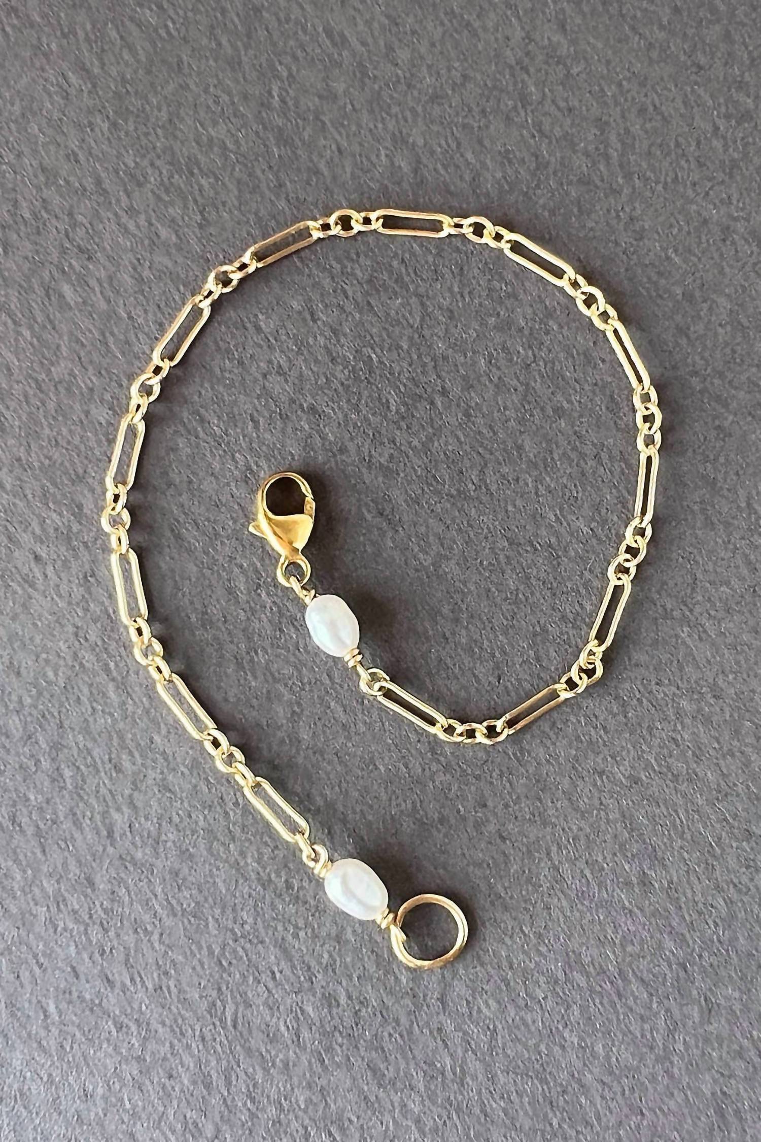 This bracelet will be your favorite go-to piece of the season. Discover the Women's Lily Chain Bracelet by Astor & Orion, a sophisticated accessory crafted with enduring 14k gold-filled links. This fashionable piece features modern chain links adorned with freshwater pearl accents, ensuring it stands out in any ensemble. With a secure lobster clasp and available in sizes 6.5, 7, and 7.5 inches, this bracelet offers both style and comfort. Perfect for daily wear, it's ethically made with the planet in mind.