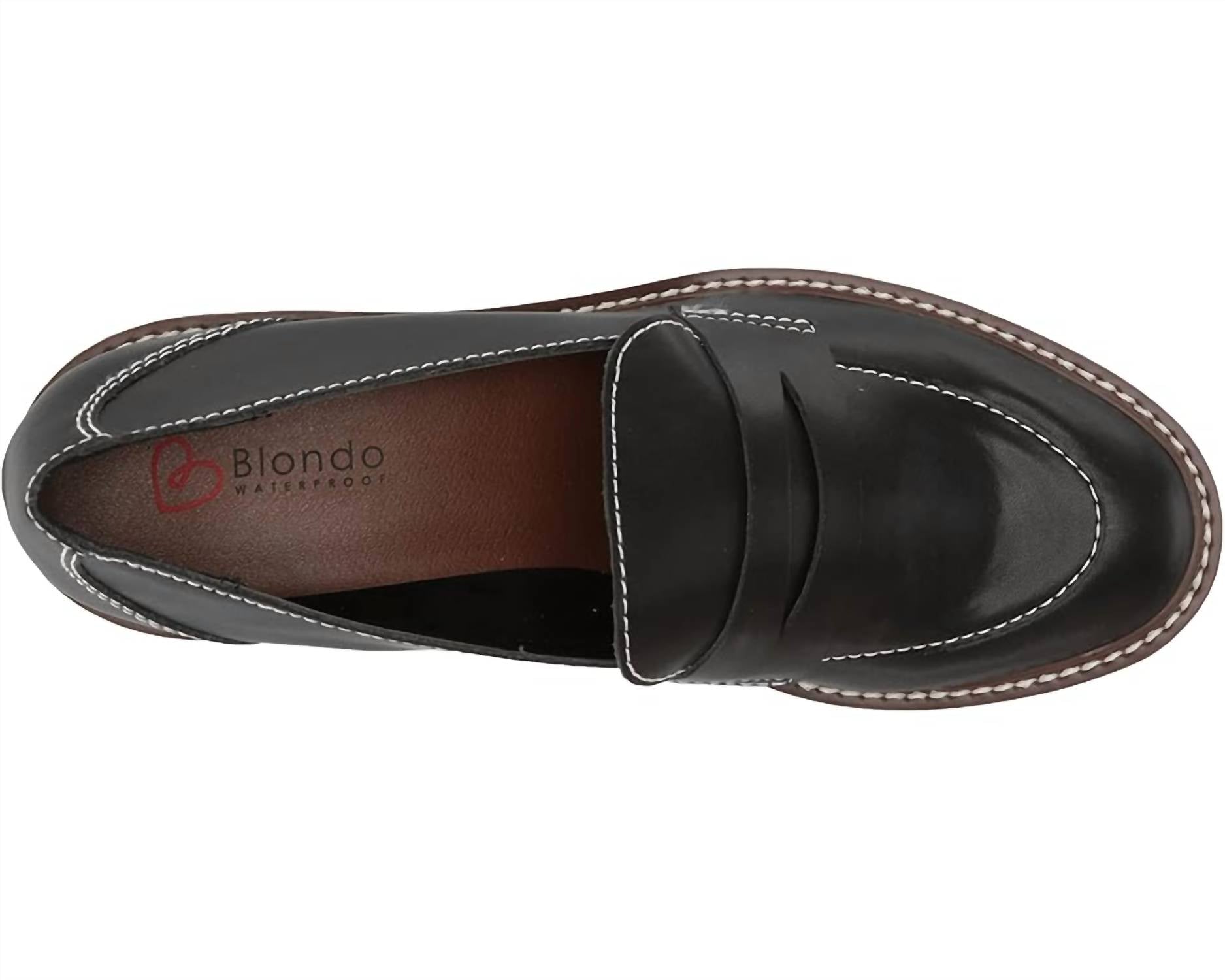 Enhance your polished ensemble with the Blondo Dulce Waterproof Loafers, available in chic black leather or calf leather. Crafted from waterproof leather or suede, these loafers feature AquaProtect® sealed seams to ensure your feet stay dry and comfortable in any weather. These loafers are designed with a breathable synthetic lining and insole for added comfort, and the easy slip-on construction makes them perfect for on-the-go wear. A durable rubber outsole and a classic almond moc toe with contrast stitch detailing complete the design, offering both style and functionality. Heel height measures 2.5 inches. Made with impeccable craftsmanship and imported quality.