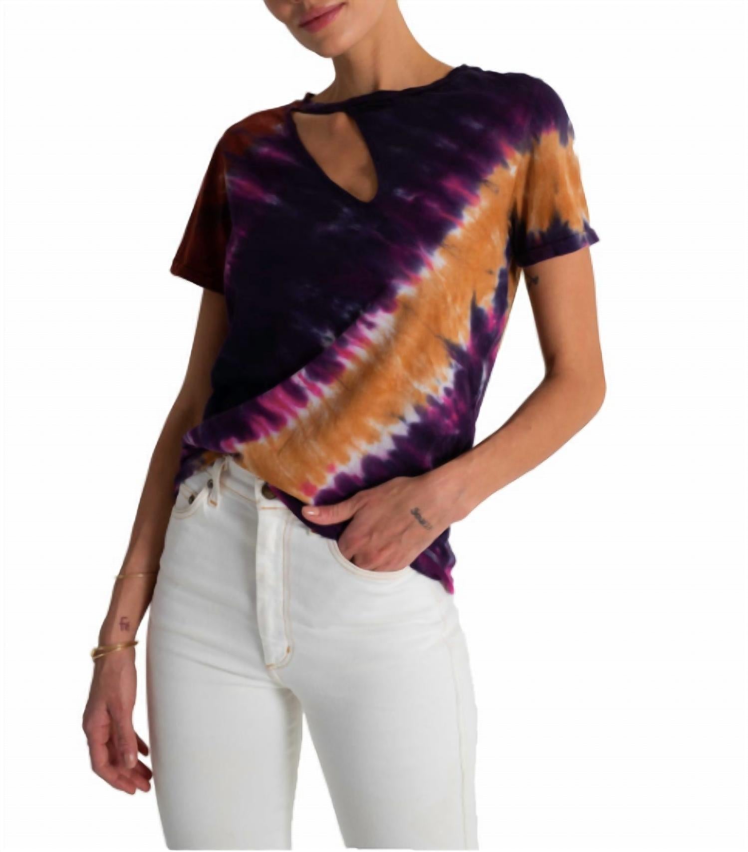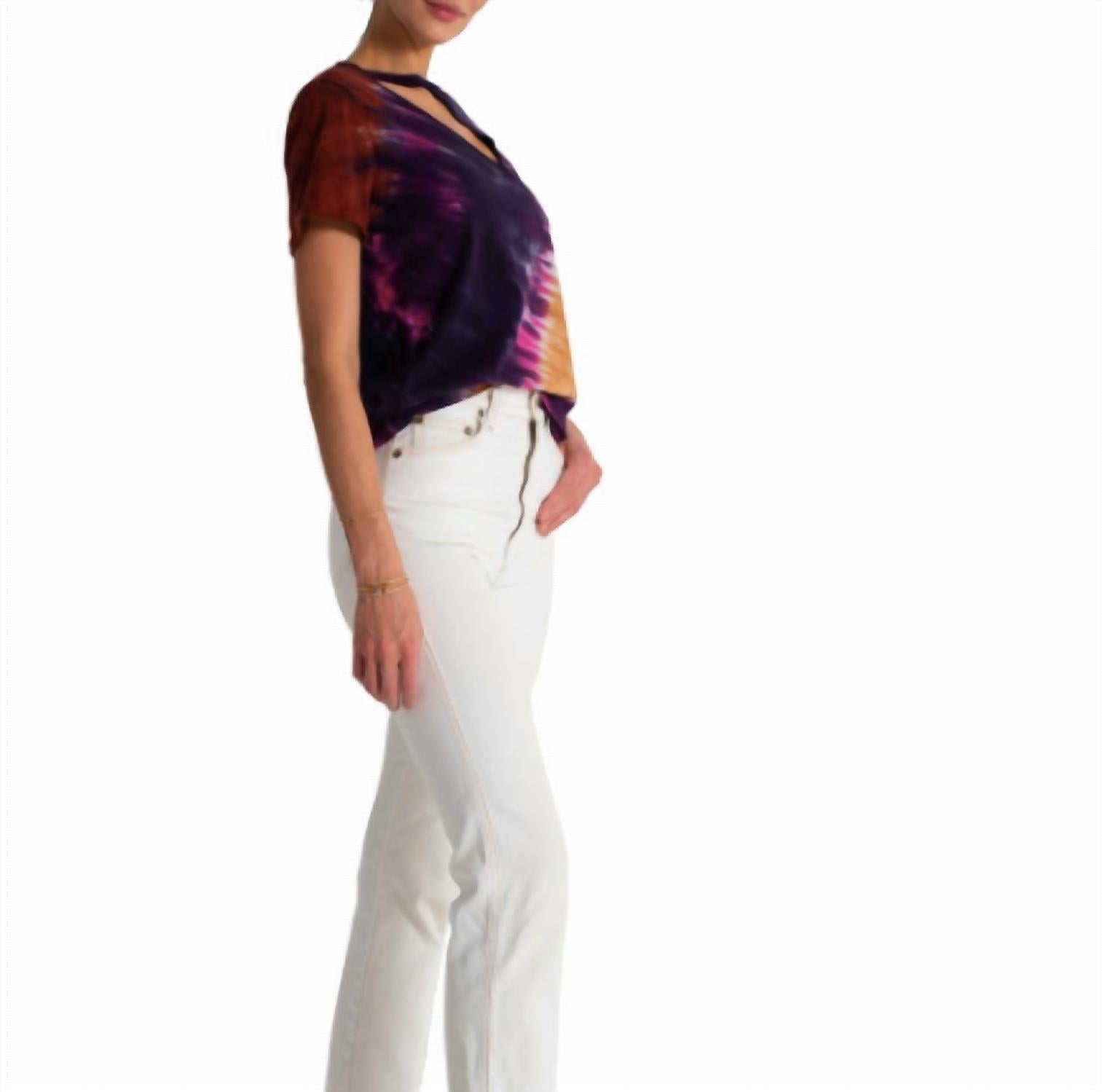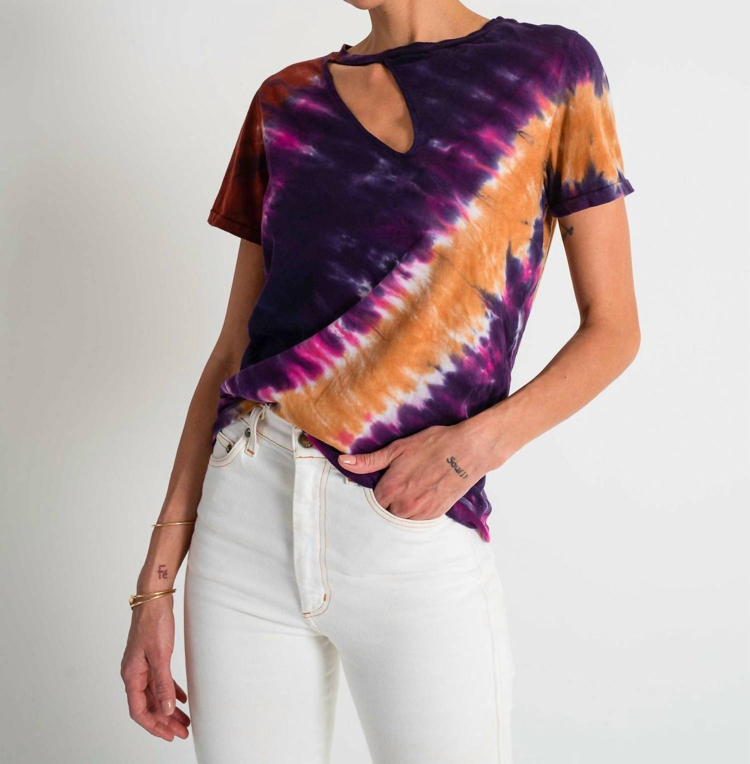 We love the tie-dye trend, so we added the Dash Tee to our inventory! This tie-dye slashed cotton t-shirt is cool and casual, as well as comfortable and lightweight! The crewneck tee has a hand-deconstructed slash for an added flare! The gorgeous purple, orange, and pink tie-dye is colorful, bright, and fun.24 1/2" length100% cottonMachine wash, dry flatImportedTrue to size.