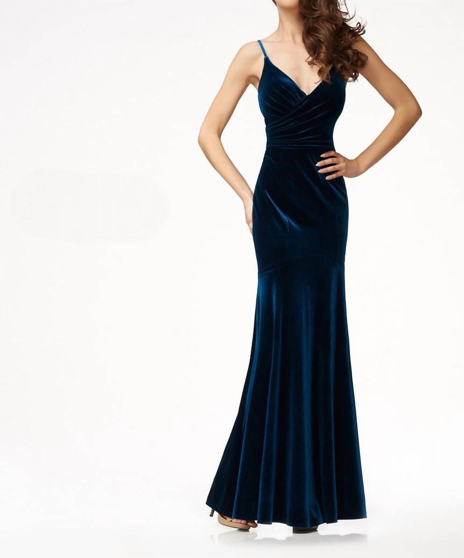 Thin straps. V-neckline. Long. Spot clean.