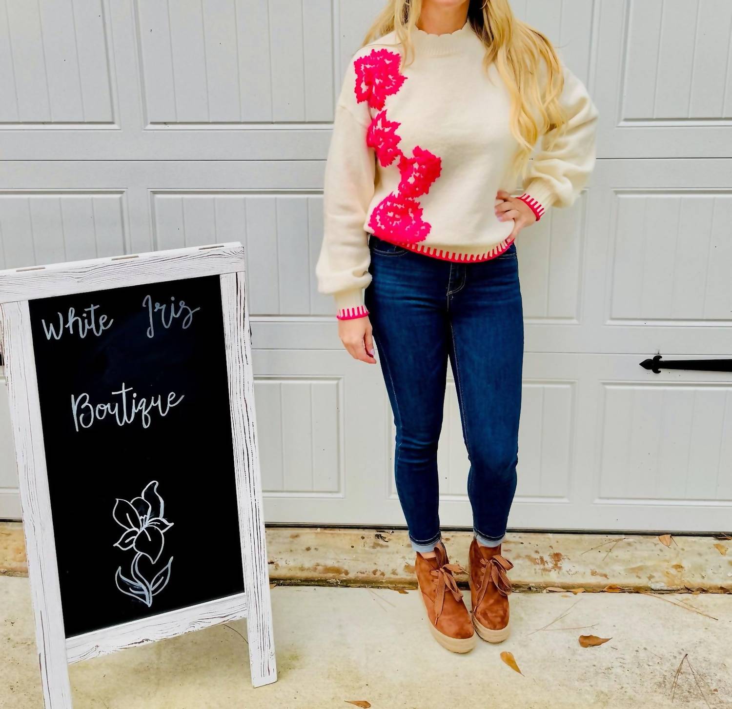 Stay warm and stylish in this versatile and effortlessly cool knitwear staple. Wear it alone or layered, it's the perfect sweater for the season and you'll wish you had it in every color. Enhance your spring wardrobe with the &merci Penelope Sweater, featuring a beautifully intricate floral embroidery that exudes nature's elegance. With long puff sleeves and a relaxed fit, this sweater provides both comfort and a feminine silhouette. Crafted from a blend of 42% Acrylic, 30% Polyester, and 28% Nylon, it offers a multi-textured feel with a pop of color from the contrast thread cuffs. Easy to wear with a pull-on closure, the sweater is best maintained with hand washing and line drying.