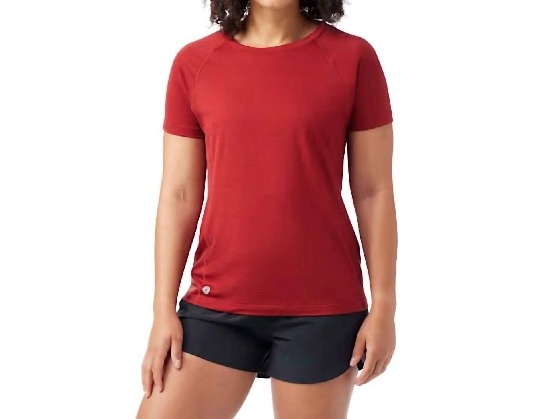 The short sleeve tee you'll want in every color. Experience all-day comfort with the Smartwool Active Ultralite Short Sleeve Shirt in a vibrant currant shade, designed to keep you cool and fresh. Crafted with raglan short sleeves, this ultra-light shirt includes a blend of 53% Merino wool and 47% Lyocell, ensuring breathability and softness while resisting odors. Made without bulk for optimal freedom of movement, it is perfect for your active lifestyle—be it trail hikes or training runs. Closure: Pull on. Care instructions: Machine wash and line dry.