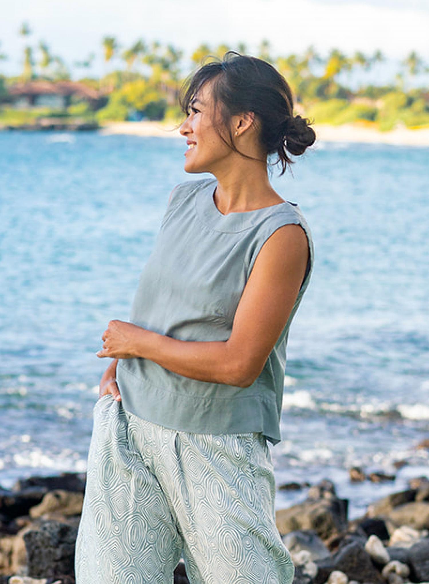 A timeless blouse that will never go out of style. Introducing the Khush Donna Sleeveless Top, a perfect blend of comfort and minimalist style in a sleek Hazy Silver shade. This top features a fashionable boatneck design and is crafted from 100% Rayon for a soft, luxurious feel. Its pull-on closure ensures easy wearing, while the wide fold bottom hem provides a flattering fit. Care: Hand wash cold. Model Alyssa is 5'10" and wearing a size small.