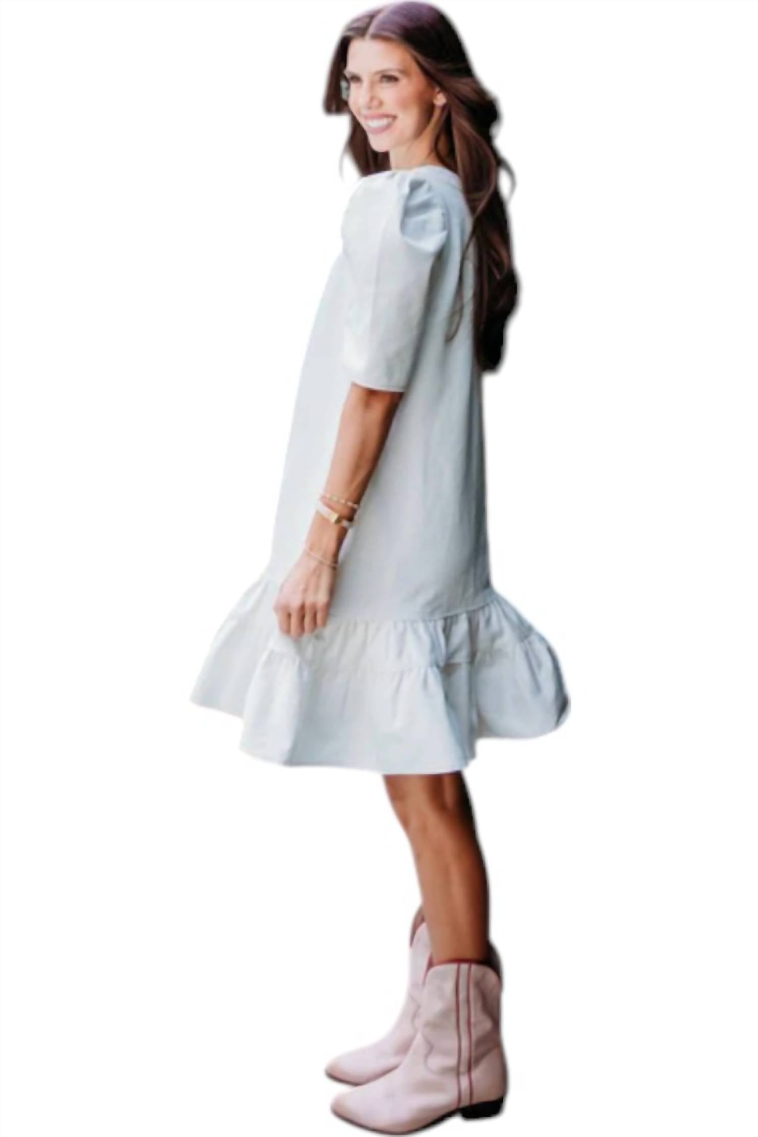 The perfect mini dress for those warmer months. Experience effortless elegance with Karlie's V-neck Ruffle Bottom Dress in timeless ivory. Crafted in a mini length with short sleeves, this solid shift dress is designed to flatter. Featuring a chic V-neckline and a playful ruffle bottom, it's the perfect addition to any wardrobe. Ideal for any occasion, this dress combines style and comfort seamlessly.