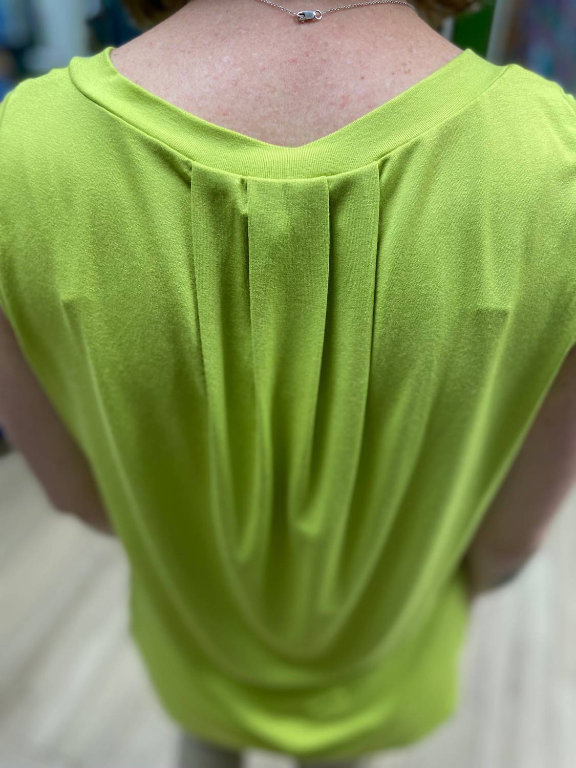 The perfect tank top for those warmer weather seasons. Elevate your style with the Pleat Tank Top by MARBLE, a vibrant and versatile piece in striking lime. This sleeveless tank is crafted from a 95% Viscose and 5% Elastine blend, offering a stretchy fit and a flattering V-neckline. Designed for straightforward, casual elegance with a pull-on closure. Enjoy your vacations in style with this solid-patterned basic that fits true to size and maintains its shape with pre-shrunk fabric.