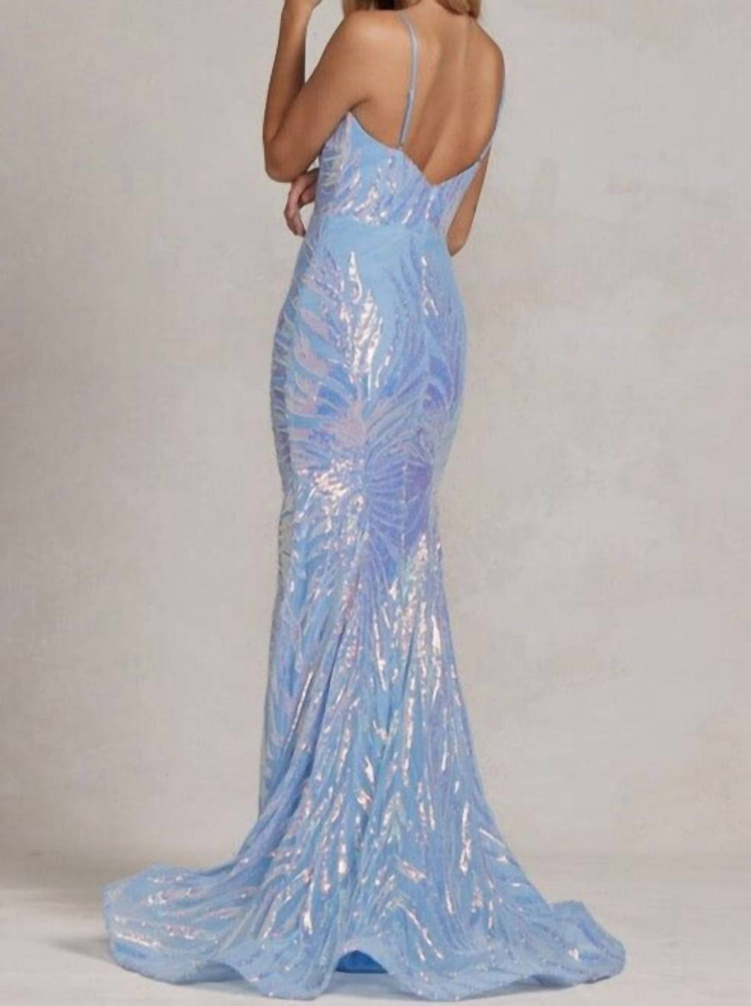 A maxi dress that is just as cute as it is comfortable. Step into elegance with the Finley Gown by Nox Anabel, a stunning choice for special occasions. This maxi dress in light blue features delicate spaghetti straps and a captivating sweetheart neckline, exuding grace and sophistication. Designed with a mermaid silhouette, it ensures a flattering fit with its zip closure. For care, it is recommended to dry clean this exquisite piece.
