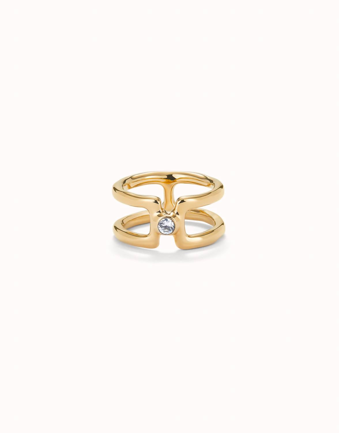 This ring will be your favorite go-to piece of the season. Introducing the Women's Ring by UNOde50, a stunning fashion accessory in a radiant gold finish with clear stone detailing. Crafted with gold plating, this piece showcases a natural, white topaz gemstone in a round brilliant cut. The topaz is elegantly set with a bezel setting, making it a sophisticated choice for any occasion. Ideal for those looking to add a touch of elegance with a versatile and timeless piece.