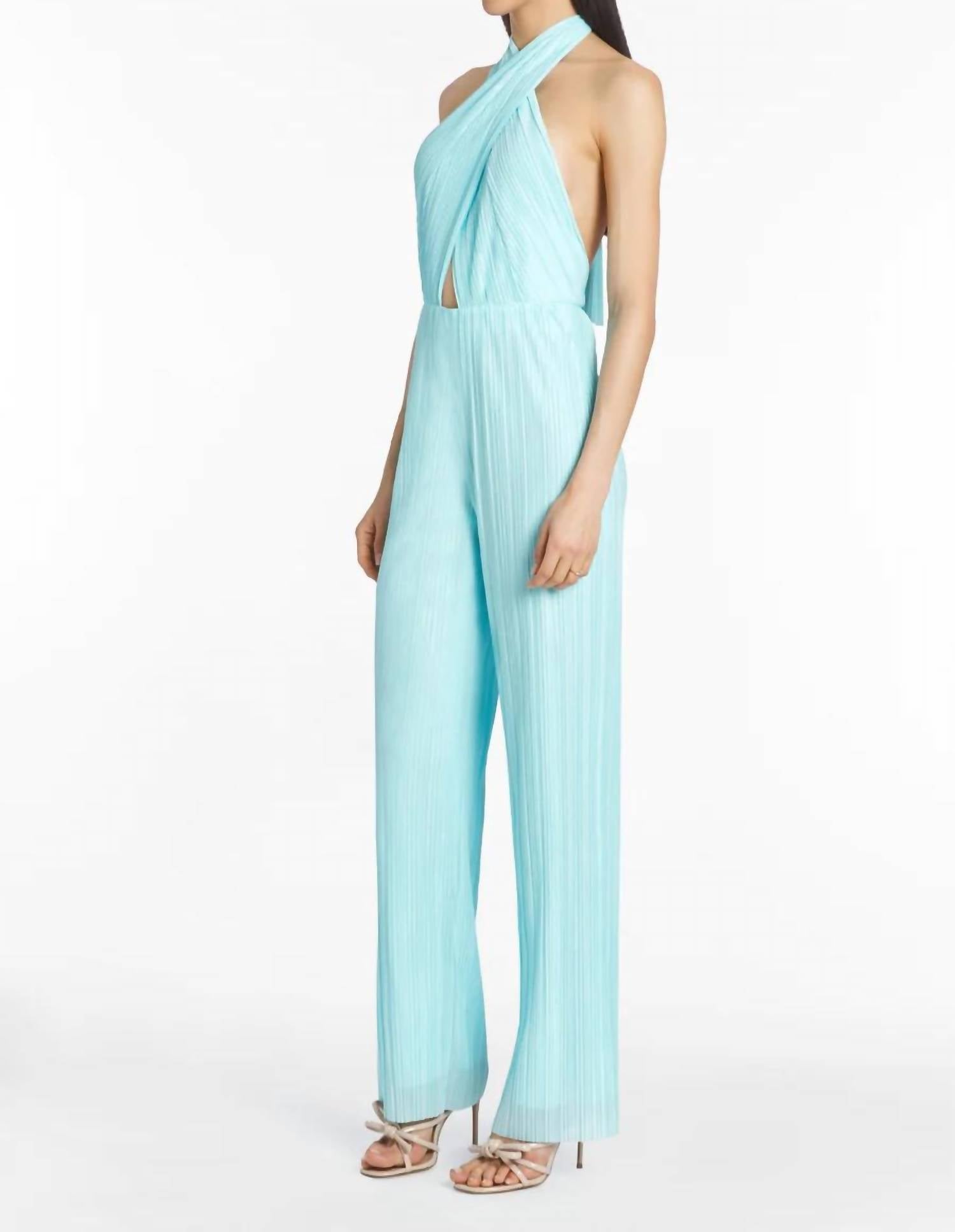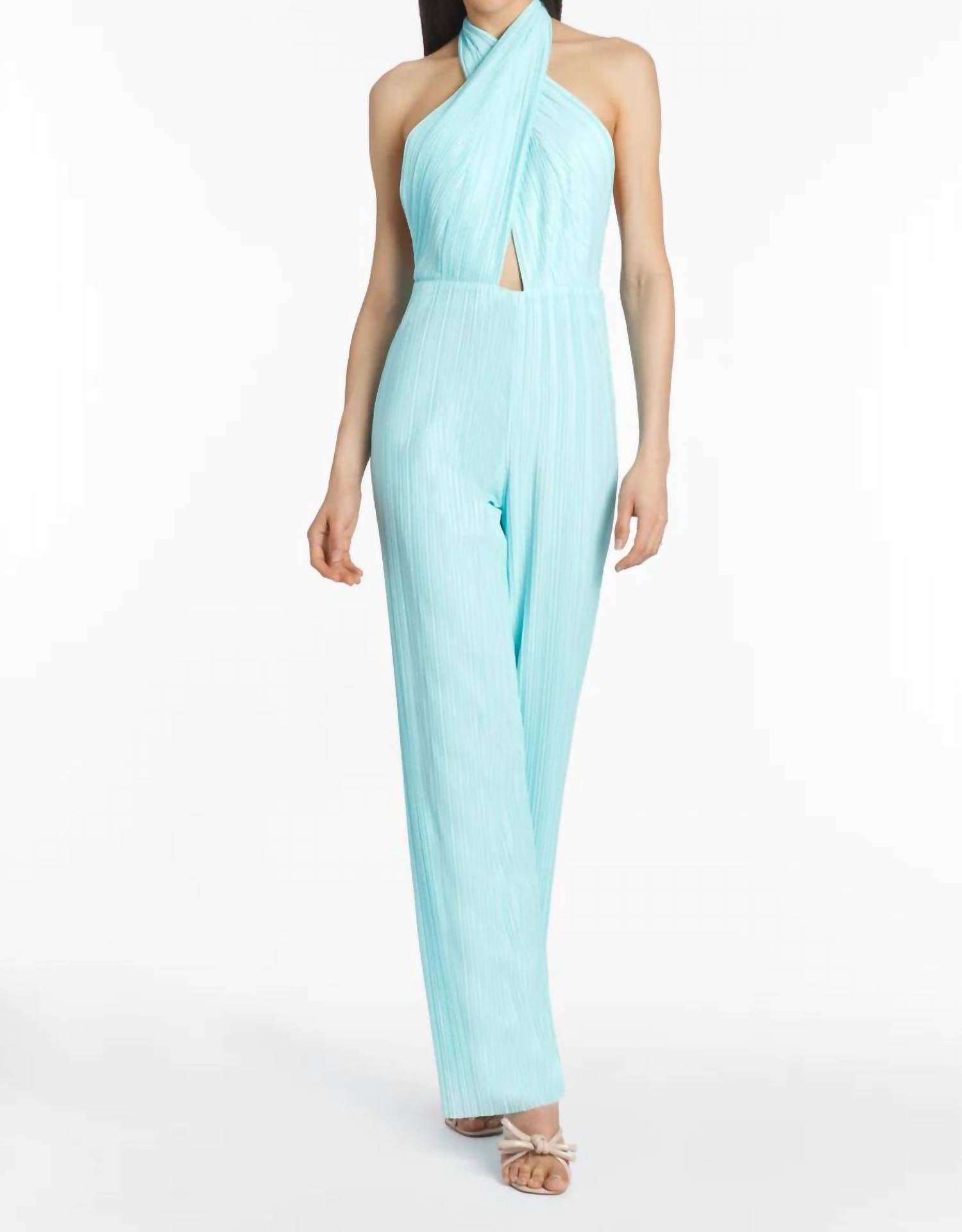 Lined. Self: 100% Polyester; Lining: 100% Polyester. Dry Clean Only. Extended Halter Neck Tie Detail. Invisible Back Zipper with Hook and Eye. No Pockets