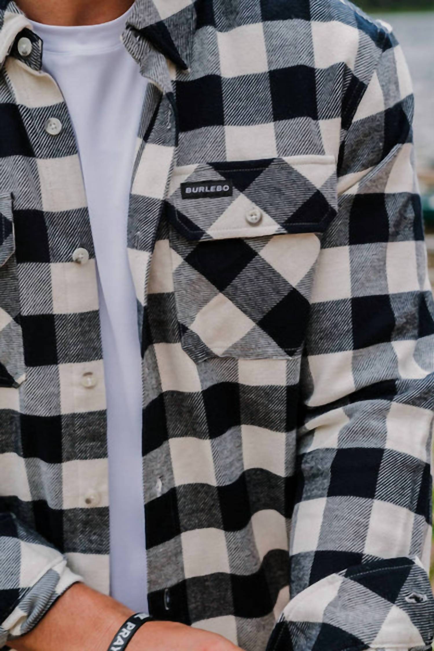 Introducing the Men's Flannel Top by BURLEBO, a staple in any wardrobe with its classic Black Buffalo gingham pattern. This long-sleeve casual button-down shirt is crafted from a soft yet durable blend of 98% cotton and 2% spandex, perfect for comfortable layering. It features practical front pockets with button closures and adjustable cuffs for a customized fit. Easy to care for with machine wash and tumble dry instructions, it's ideal for spring streetwear and vacation outings.