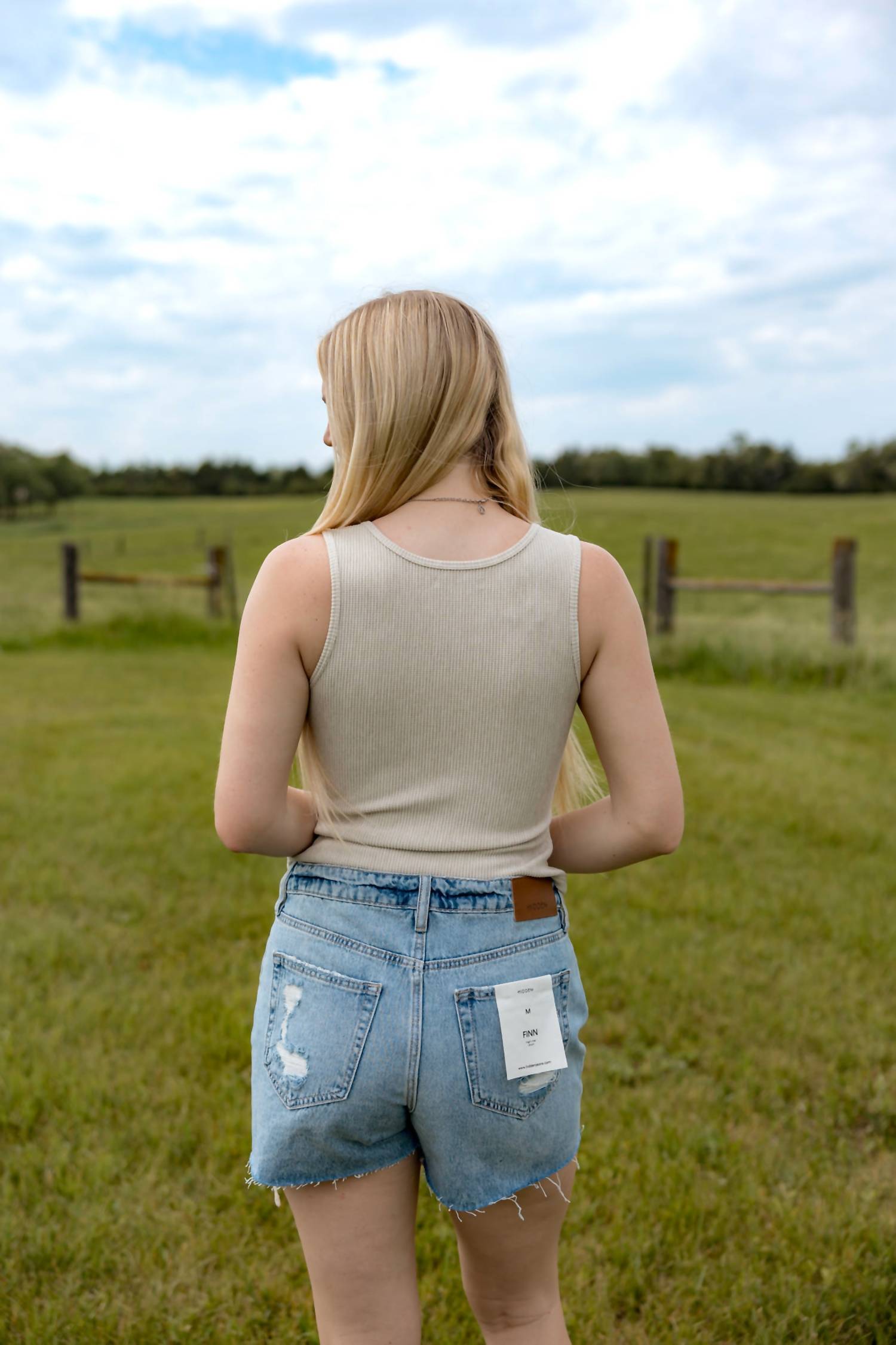 This classic tank top is perfect for layering and cute enough to wear on its own. Introducing the Marlee Twisted Ribbed Tank Top by MIOU MUSE, an ideal choice for your summer wardrobe in a chic stone color. This minimalist women's tank features a sleeveless cut and V-neckline with a unique twist detail and playful front cutouts that elevate your warm-weather style. Made for those sunny vacations, its solid pattern and tie closure ensure a perfect fit. Model is wearing a size small (5'8" height, 33.5" chest, 28.5" waist, 40" hip).