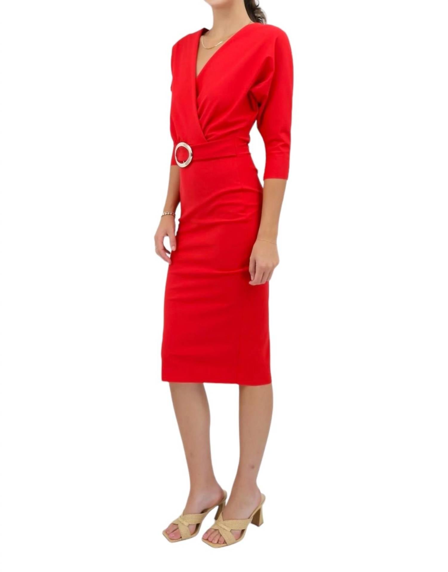 A midi dress so versatile, your options for wearing it are endless. The Nastina Cocktail Dress by CHIARA BONI is a striking choice for any engagement occasion. Crafted from a luxurious 72% nylon and 28% elastane blend, this bodycon midi dress in Passion hue features long sleeves and a sophisticated V-neckline. Designed and made in Italy, it offers a polished look with a pull-on closure for effortless wearing. The dress measures approximately 43.75 inches from shoulder to hem. Care: Hand wash. Model is 5'10" and wearing a US size 4.