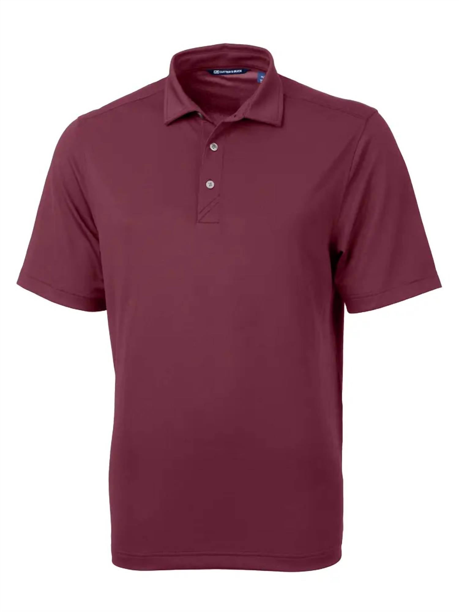 Discover the Men's Virtue Eco Pique Recycled Polo by Cutter & Buck in a vibrant Chutney shade, crafted for versatility and comfort. This short sleeve polo combines 95% certified eco-friendly recycled polyester with 5% spandex, providing four-way stretch and a cooling effect. Designed with a self-fabric collar, it also offers UPF 25+ UV sun protection and moisture-wicking properties, containing an average of 15 recycled plastic bottles. Proudly imported and machine washable, this solid-pattern polo is ideal for any setting, from the golf course to casual nights out.