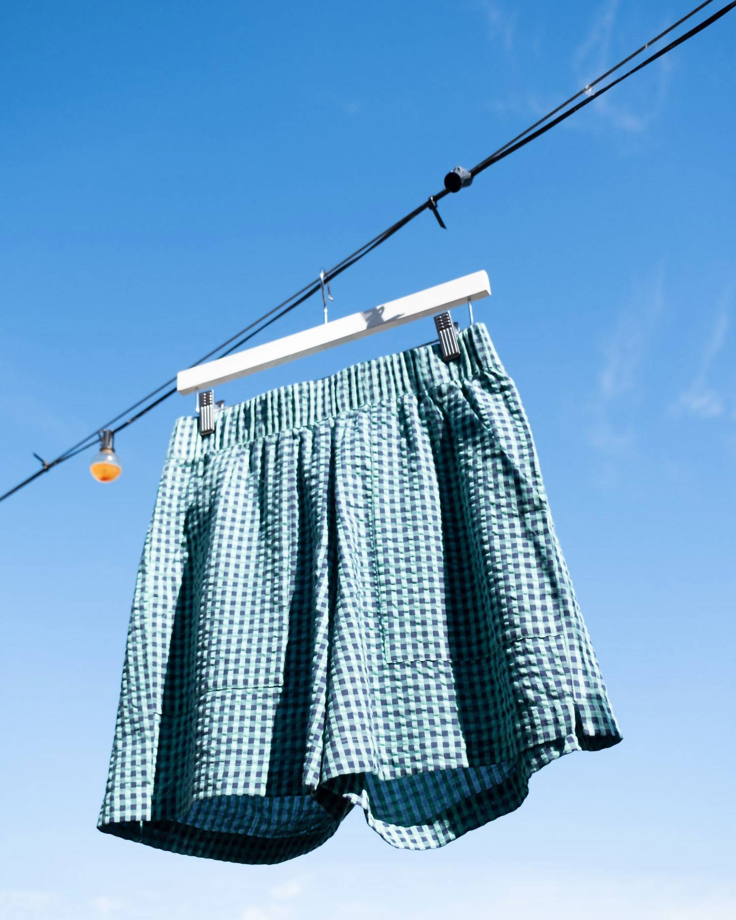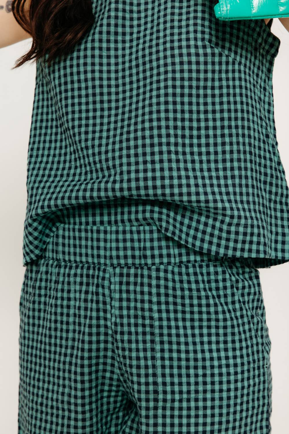 Tuck your favorite tee into these high-waist shorts for a more casual-cool feel. Introducing the Petra Day Shorts Gingham by BIBICO, the perfect addition to your summer wardrobe in refreshing green with a classic plaid check pattern. Crafted in India, these high-waist shorts are designed with comfort in mind, featuring a relaxed pull-on style with an elasticated waistband. Practicality meets style with two roomy front pockets and two large patch pockets at the back. These shorts are your go-to for vacation days, offering endless versatility for dressing up or going casual.