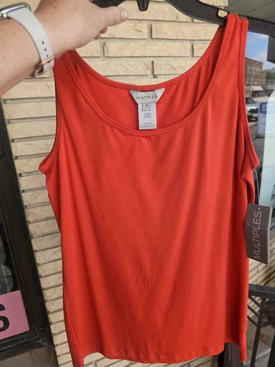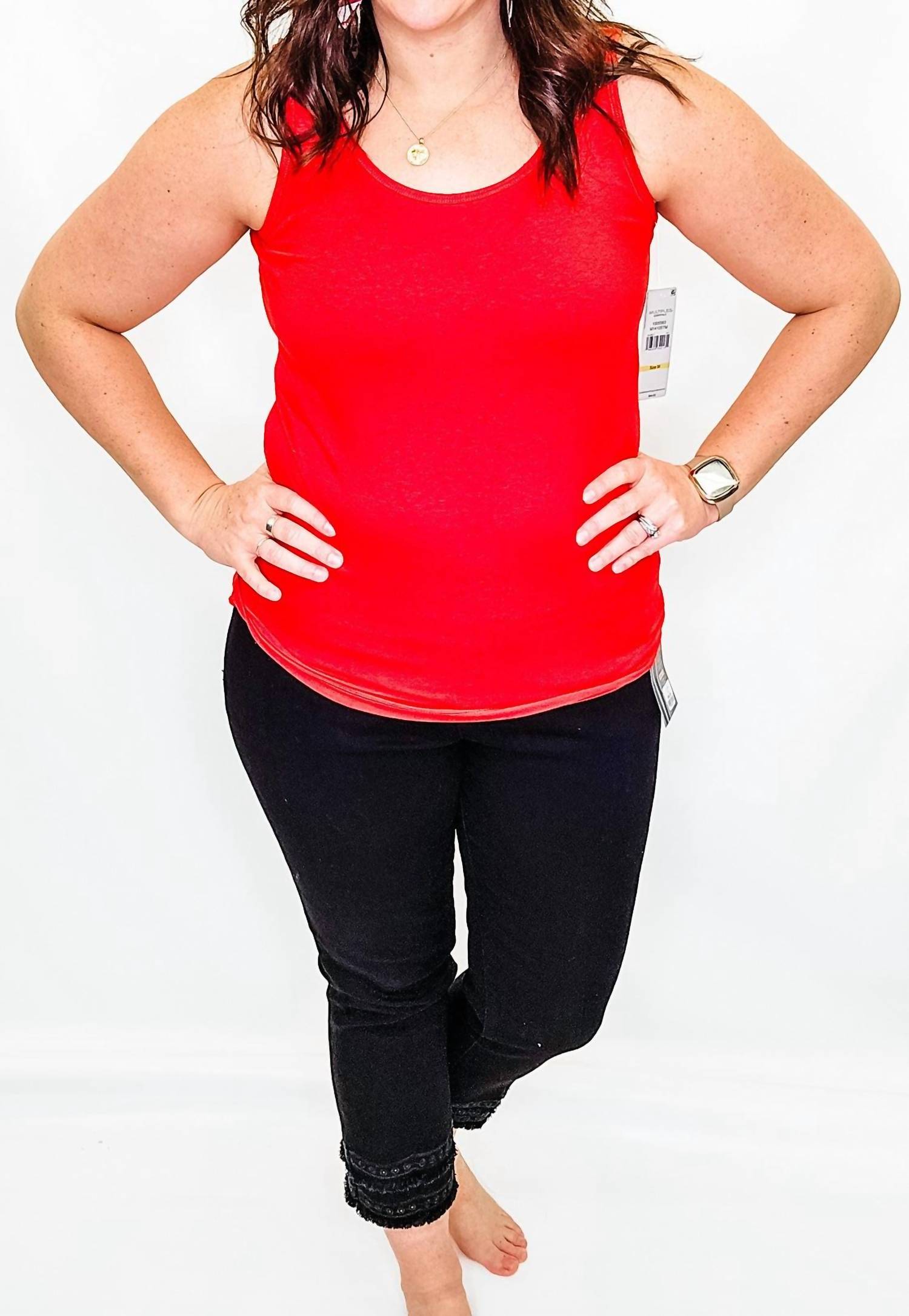 The perfect tank top for those warmer weather seasons. Made with a comfortable blend of cotton, modal, and spandex. Sleeveless top offers both softness and stretch. Comes in a vibrant poppy color with a bra-friendly wide strap design and a flattering scoop neckline. Machine wash cold. True to size. Perfect for layering under jackets or wearing on its own for a chic summer streetwear look.