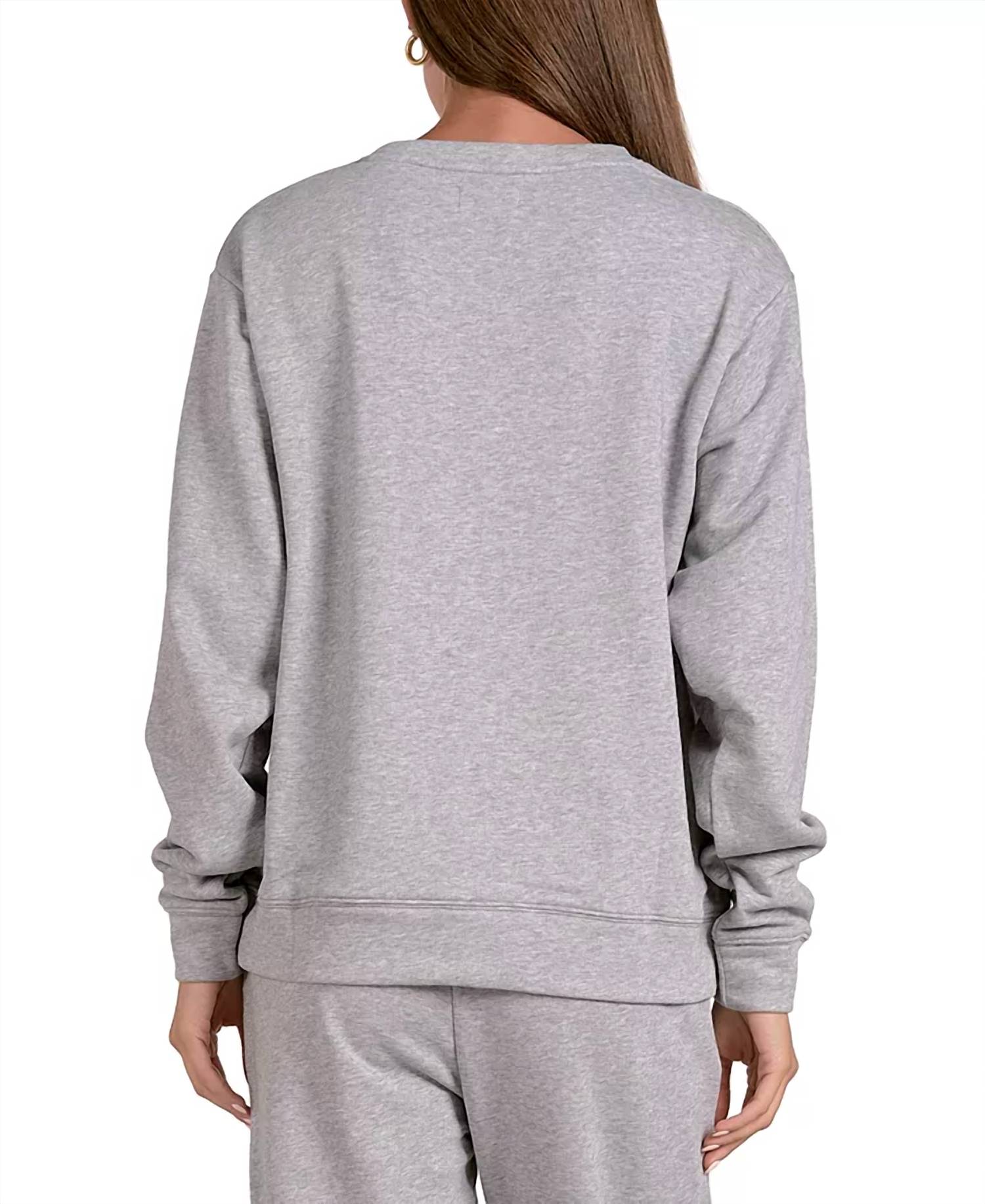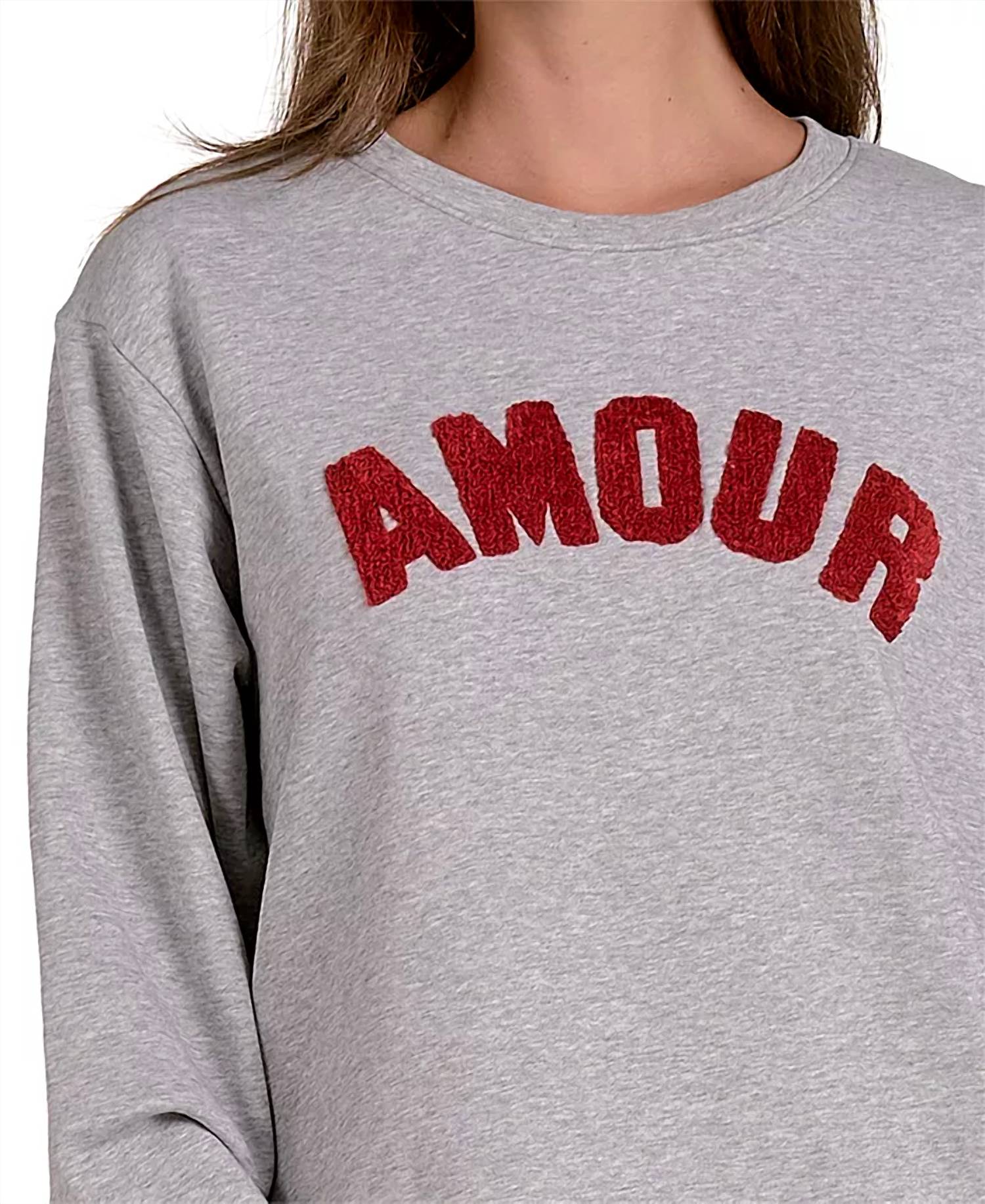Whether you're running around town or lounging at home, this sweatshirt works for both. Elevate your streetwear collection with the Amour Crew Sweatshirt by ELAN, crafted in a cotton blend for ultimate comfort. This light grey sweatshirt features long sleeves and striking red graphic lettering, making it a standout piece. Closure is a convenient pull-on style designed for the modern woman who values vibe and ease. For care, simply machine wash to maintain its unique design.
