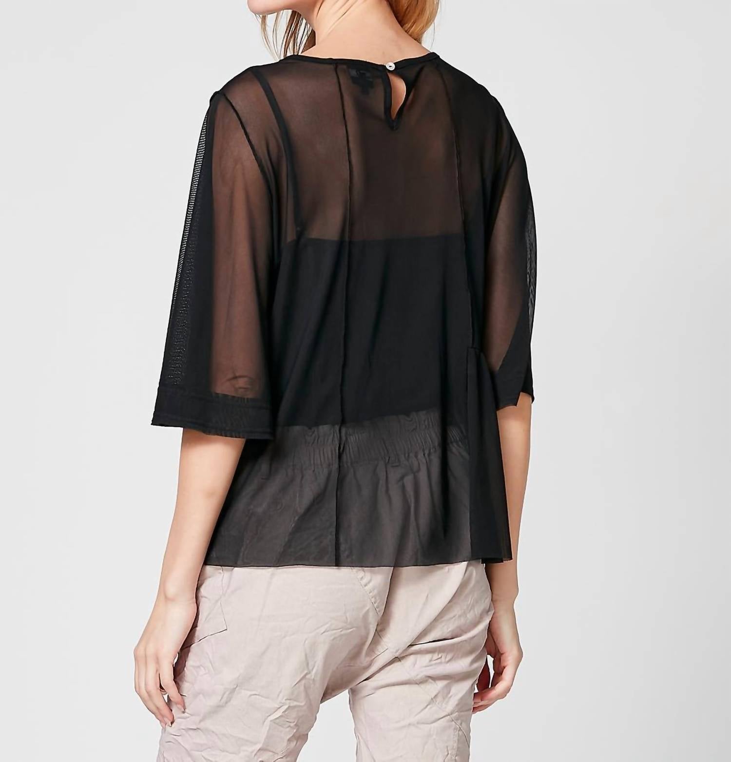 Pair this with your favorite jeans and slides for your next girls night out. Introducing the Tanja Blouse by NU Denmark, a chic piece designed in solid black with short sheer sleeves for a sophisticated touch. This women's blouse features a classic crewneck and a convenient button closure, making it an ideal choice for minimalist and versatile dressing. Perfect for a dinner party or Thanksgiving affair, it pairs effortlessly with tight jeans or elegant trousers. Care: Hand wash recommended.