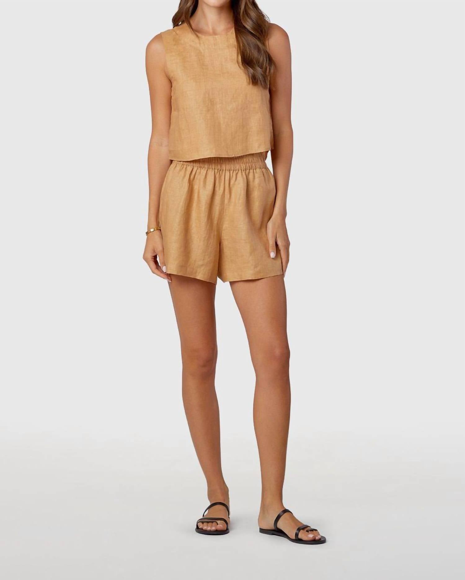 High-waist is here to stay and we especially love this style short. Introducing the Livro Pool Shorts, the perfect blend of sophistication and comfort for discerning women seeking elegance in casual wear. These high-waisted shorts are crafted from luxurious linen, featuring a solid bean color that aligns with minimalist trends. The elastic waist and pull-on closure ensure ease of wear, complemented by practical pockets for everyday functionality. Proudly manufactured in Jaipur, India, these shorts promise durability through their meticulous construction and quality materials.