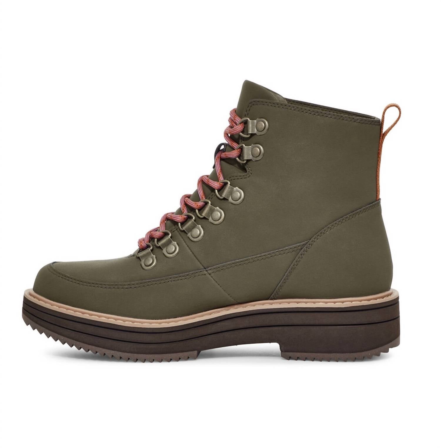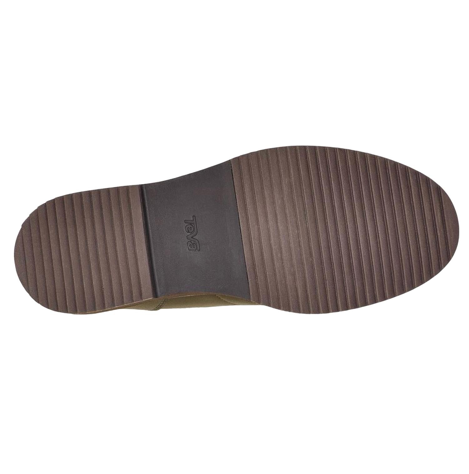 Water repellent materials. Reconstituted leather. Microfiber lining. Reycled polyester lace. Teva MAX-COMF insole technology. Cushy, memory foam topsole. 15% recycled TPU welt, 50% recycled EVA midsole. 50% recycled rubber outsole. Treated with Life Natural, a peppermint-based anti odor.