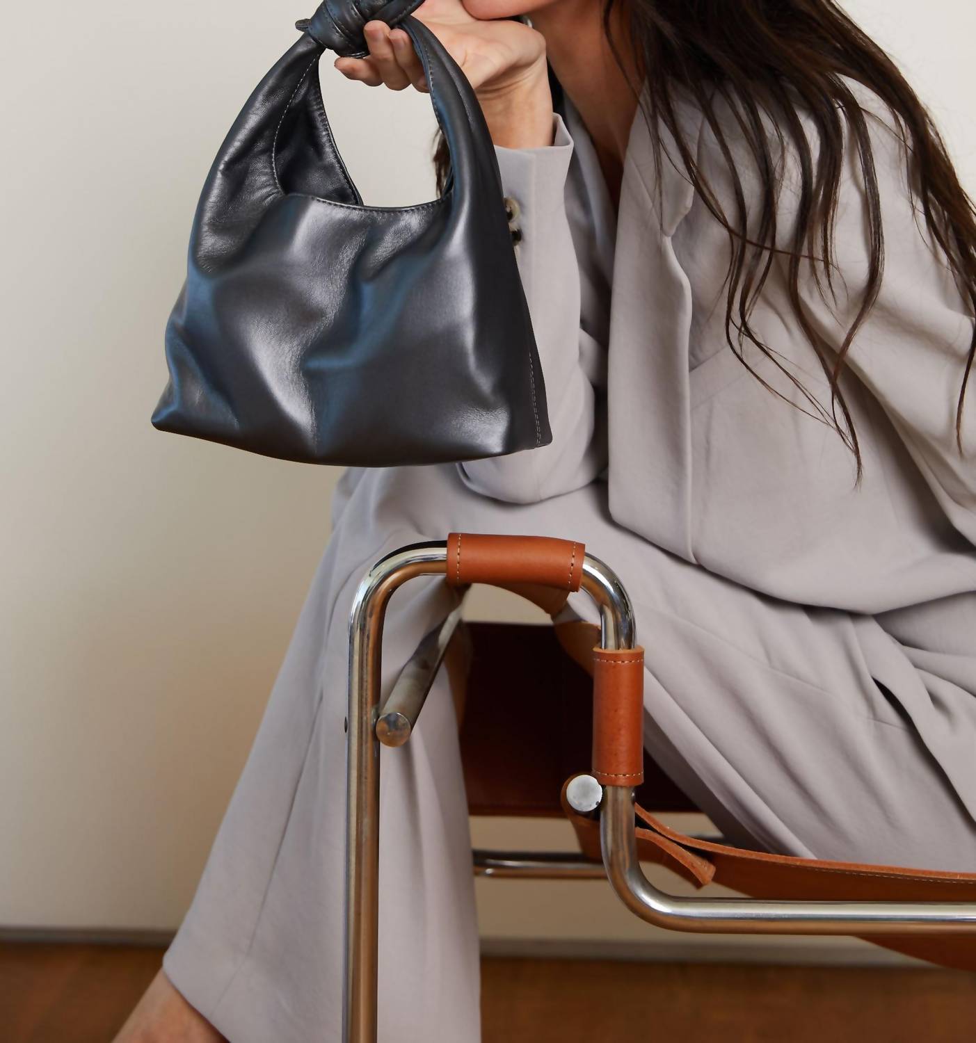 The perfect clutch for an evening out on the town. Introducing the Women's Gemma Clutch Handbag by Lemiz, a sleek pearl-toned accessory crafted to elevate any outfit. Handcrafted in Los Angeles, this lightweight clutch boasts a playful knot design and a practical magnetic closure for securing your essentials. With dimensions of 9.75" in height, 11.5" in width, and 4" in depth, it fits an iPhone Max and packs flat for travel. Lined with cotton canvas, it's the perfect blend of style and function for modern elegance.