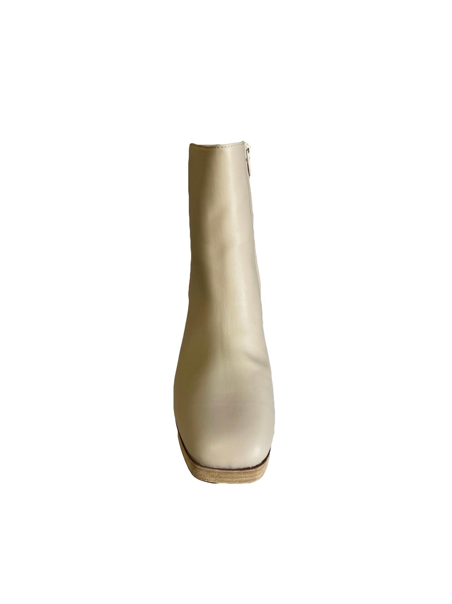 Say hello to the perfect, most versatile boot. The ankle height makes this style easily transition from day to night. Wear them with your favorite skinny jeans and tee for a more laid back look, or pair them with your favorite mini dress and jacket for a night out on the town. The Women's Shakira Boots by Miracle Miles are a chic addition to your footwear collection, crafted from luxurious leather. These cream ankle boots feature a stylish square round toe and a high 3.5" block heel, offering both elegance and height. Designed with a 1" sole height for added comfort, they incorporate a hidden zipper closure for easy wearability. Perfect for the fashion-forward adult woman looking to elevate her style.a