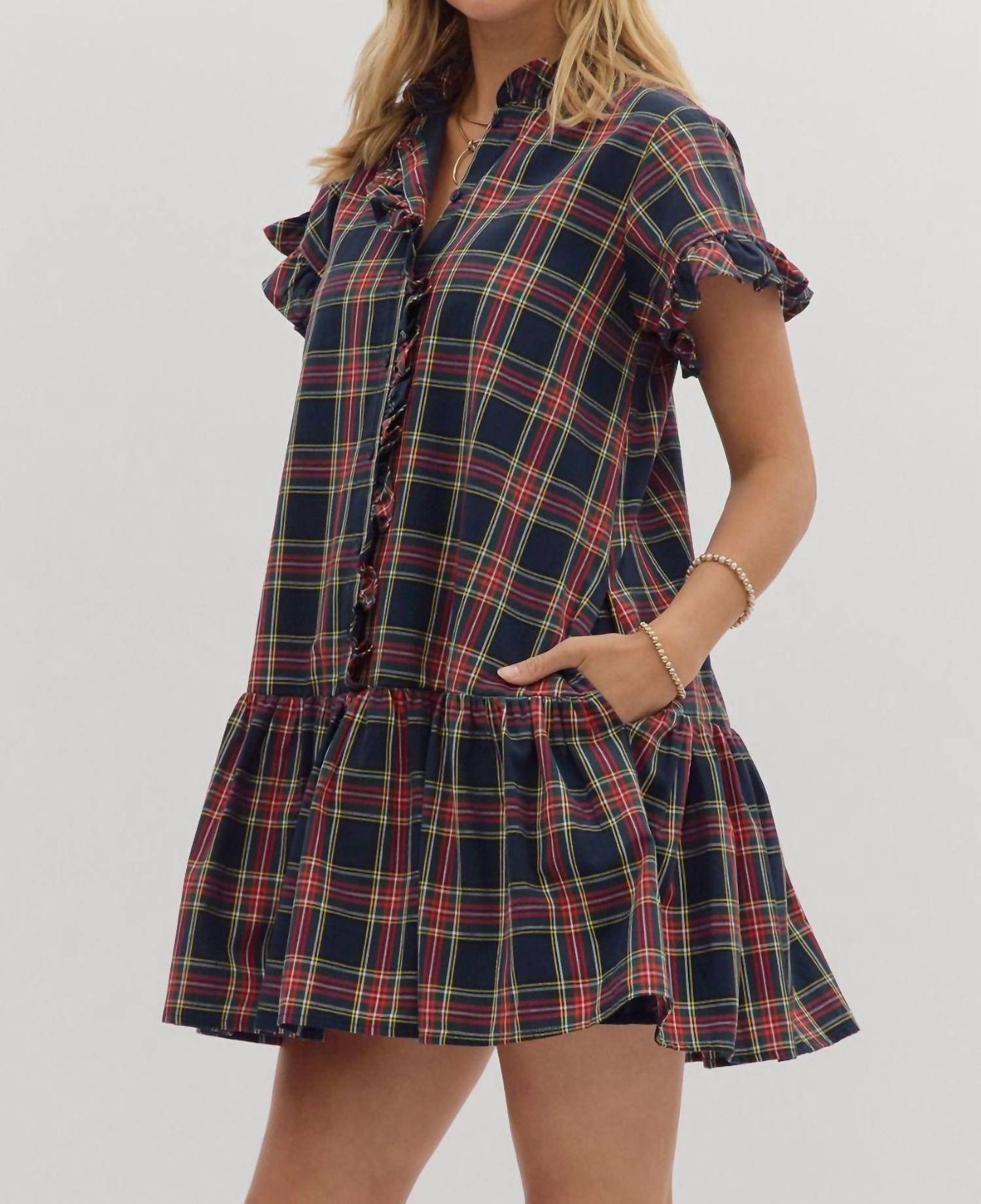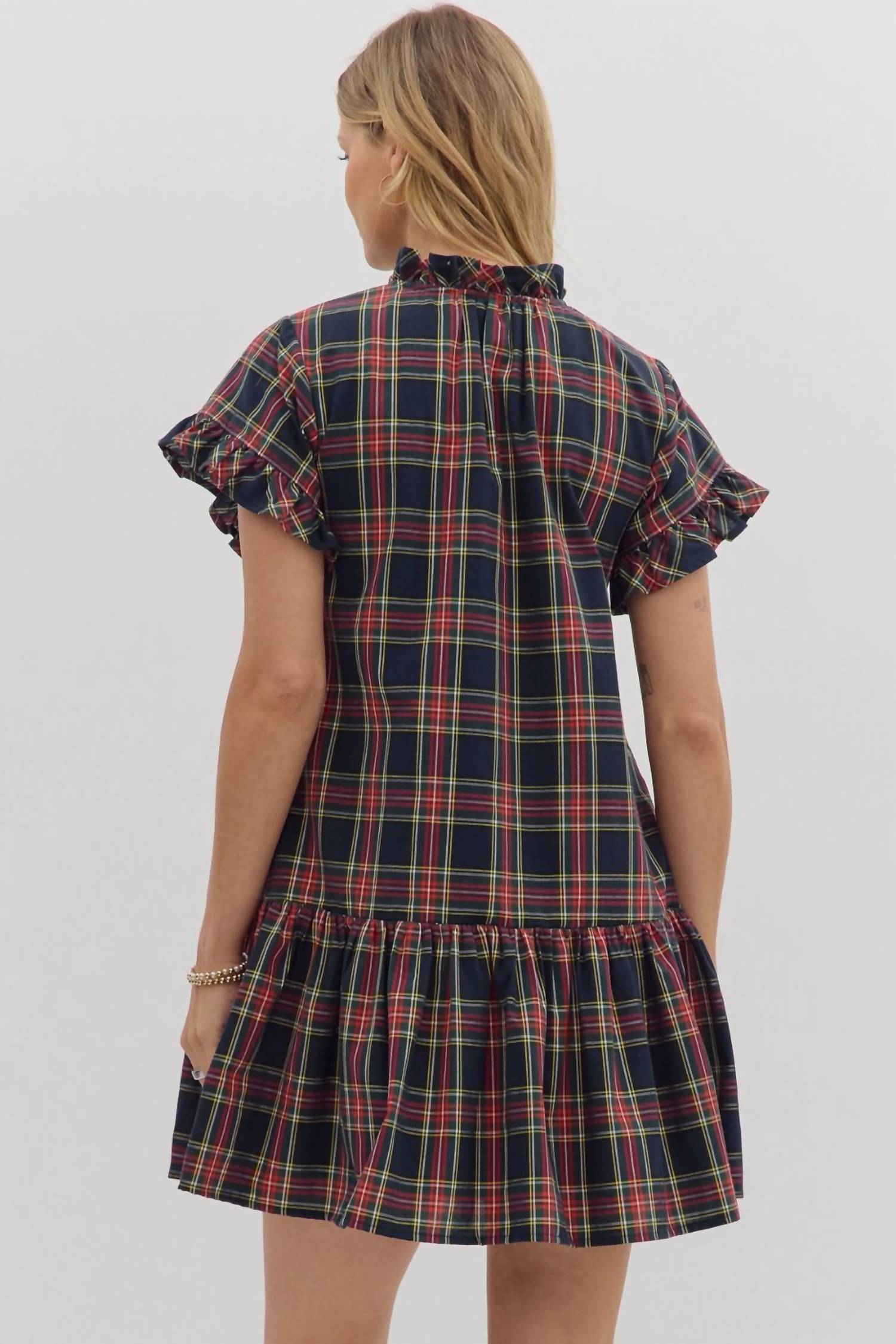 A short and breezy dress for those warmer days. Meet the Back To Me Plaid Dress by Entro, a chic mini dress designed to elevate your summer wardrobe. This navy plaid piece features short sleeves and a stylish collar, with a charming ruffle accent trim. Crafted from 65% Polyester and 35% Cotton, it boasts a practical button front closure and side pockets, perfect for a relaxed vacation vibe. Embrace the timeless appeal of this shift silhouette, ideal for embracing the 90s fashion trend.