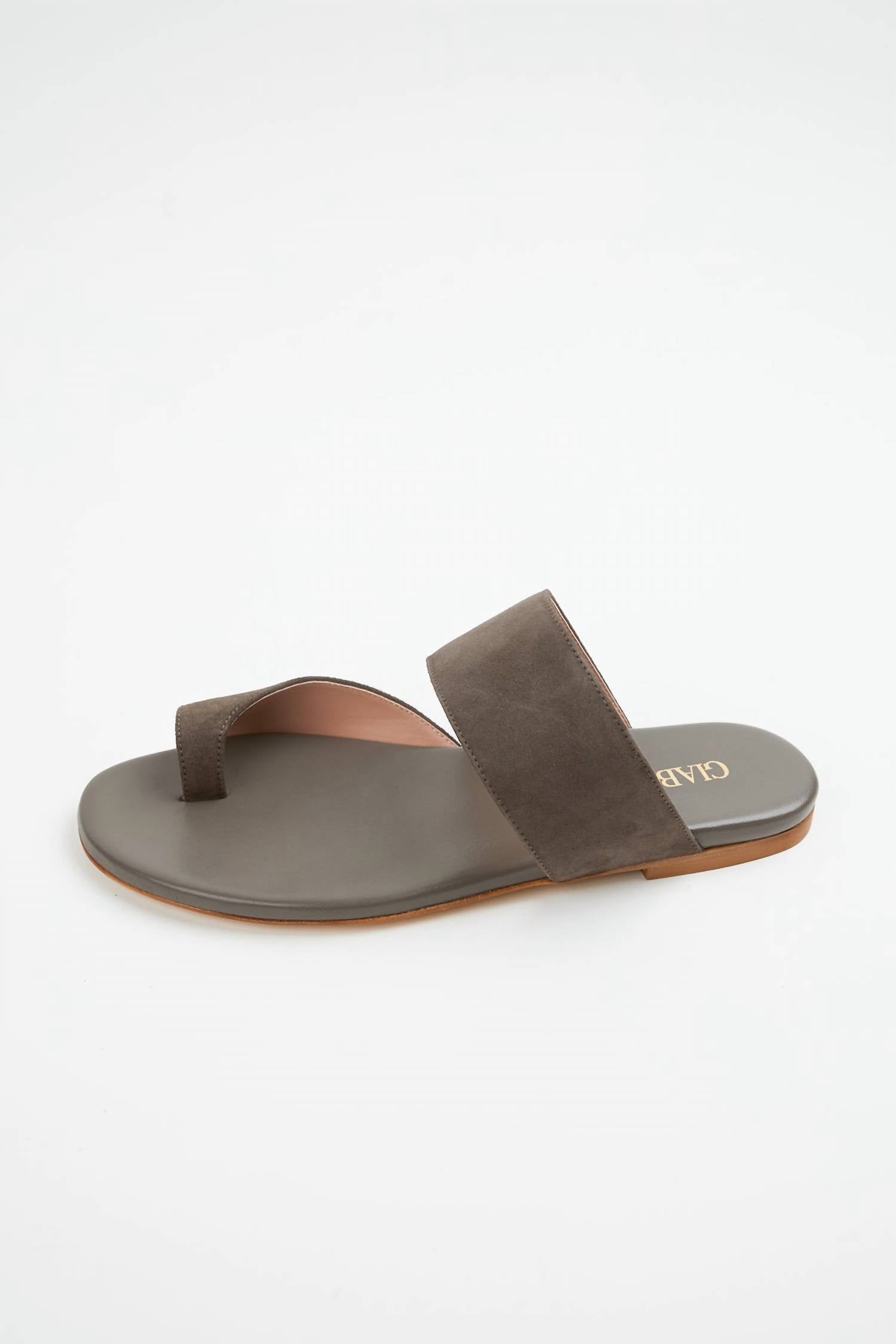 Handmade in Italy, these 'Zefiro' slide sandals are crafted from smooth brown suede with a single toe loop. This classic design will work with almost all of your summer wardrobe. Color: TaupeFabrication: 100% SuedeItalian Sizing