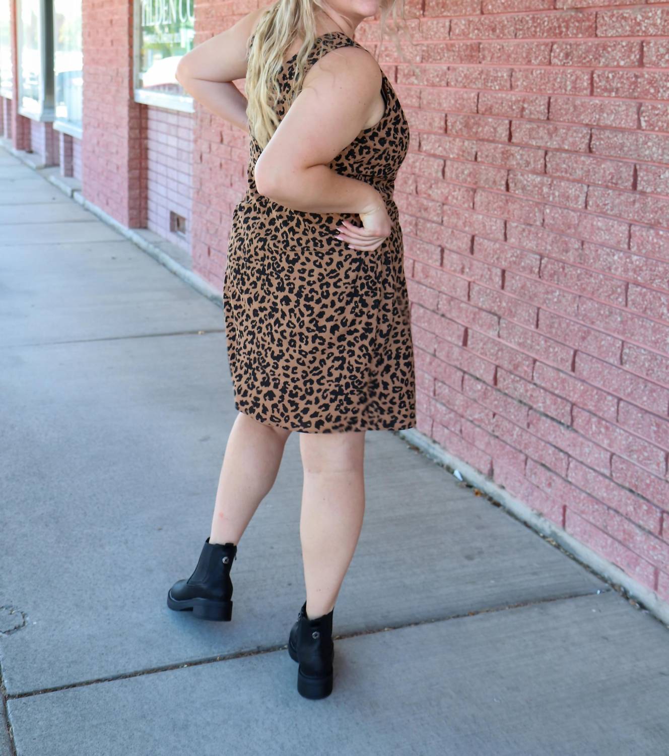 The kind of easy and flattering dress you'll be reaching for all season long. Step into everyday confidence with the Harper Jumper Dress by Mikarose, a chic addition to your wardrobe. This sleeveless, knee-length dress boasts a striking leopard print in 100% polyester, a no-stretch corduroy material for a structured silhouette. Designed with a zip closure for easy wear, it's perfect for vacation or casual outings. Care instructions include hand washing and line drying to maintain its vibrant look.