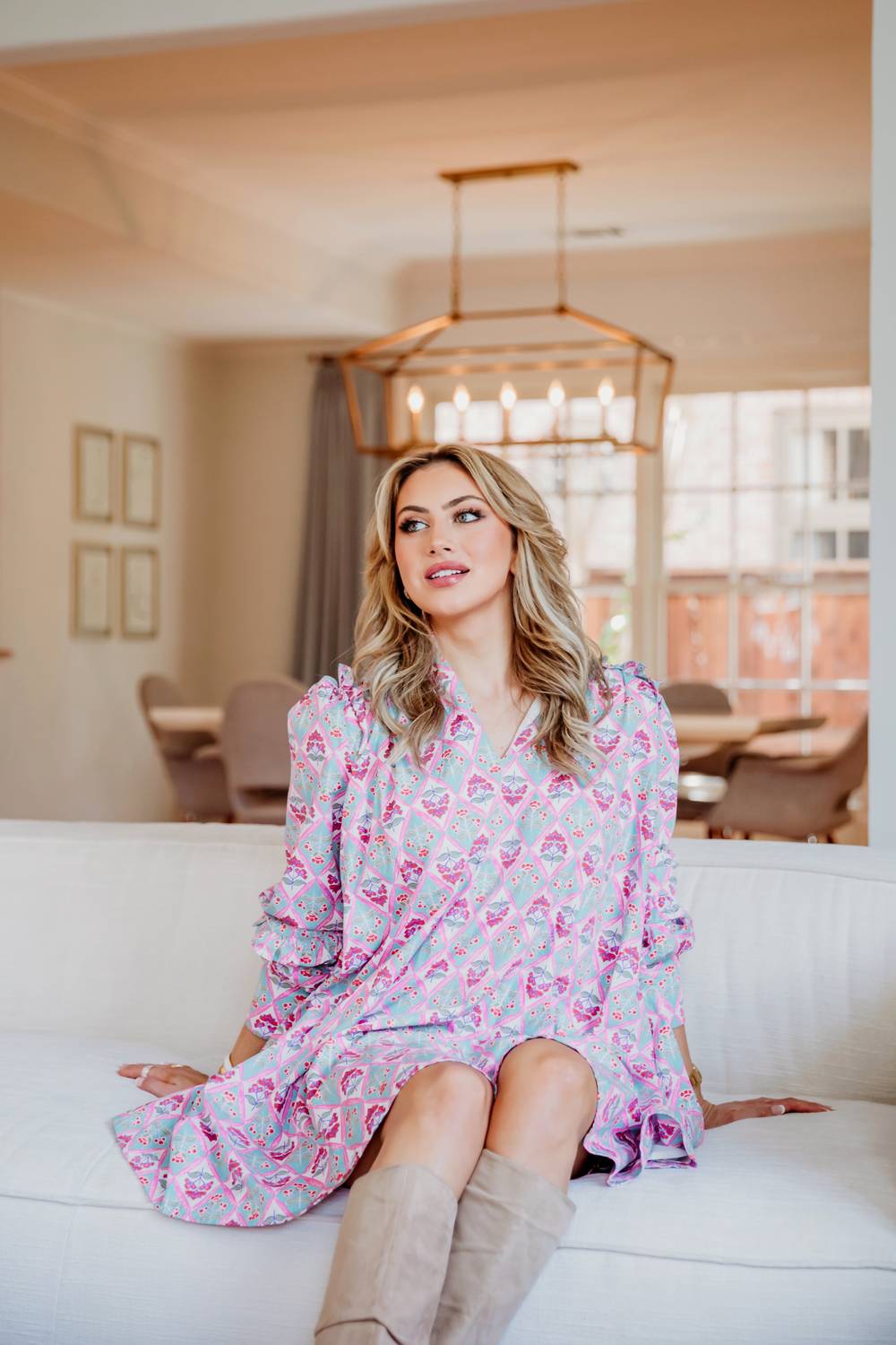 The kind of easy and flattering dress you'll be reaching for all season long. Introducing Karlie's Women's Paris Floral Ruffle Dress, the epitome of feminine charm for your spring wardrobe. This mini dress features long sleeves and a flattering V-neckline, effortlessly embodying a vacation-ready vibe with its patterned design. The A-line silhouette ensures comfort and movement, perfect for an array of outings. Closure: Pull on.