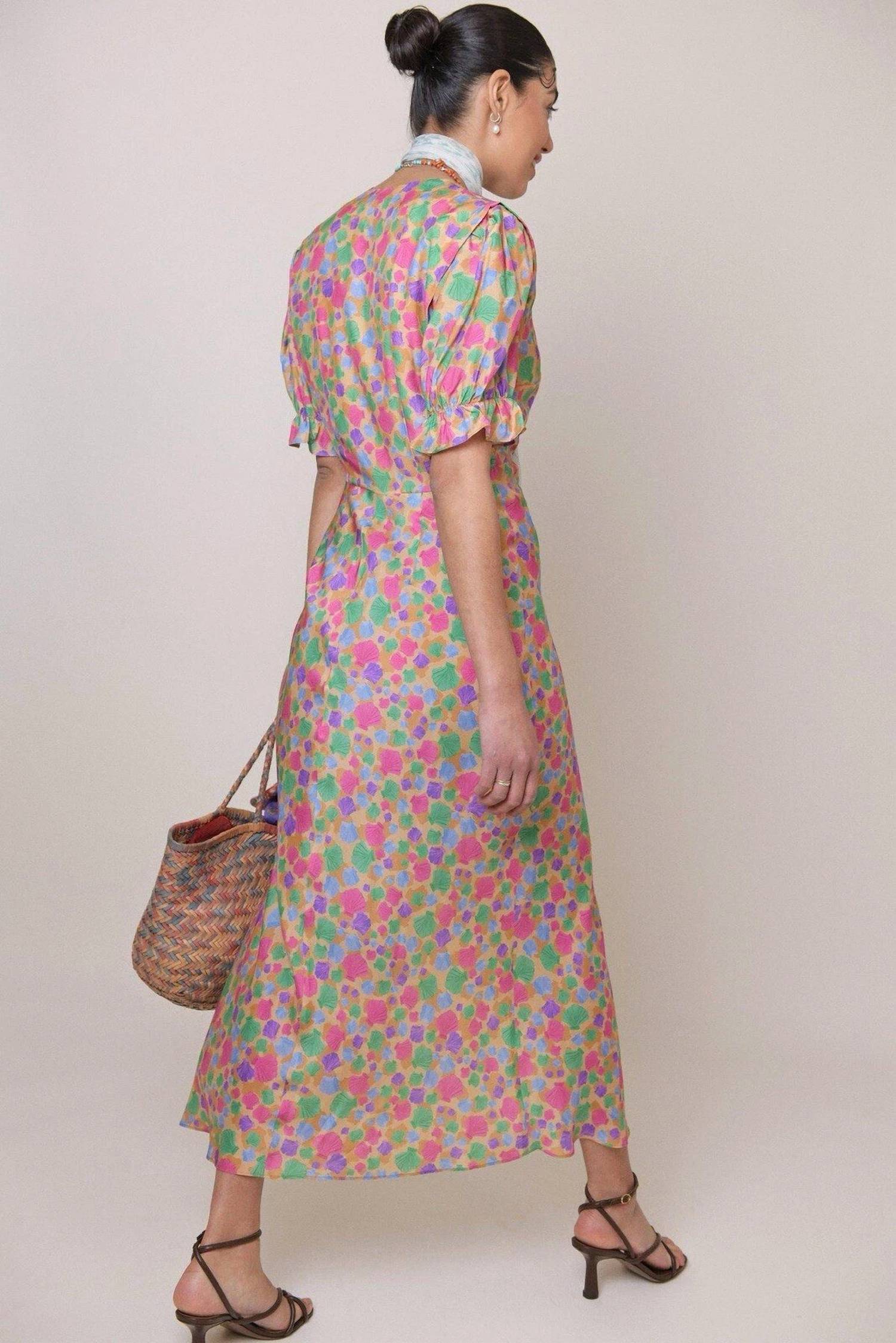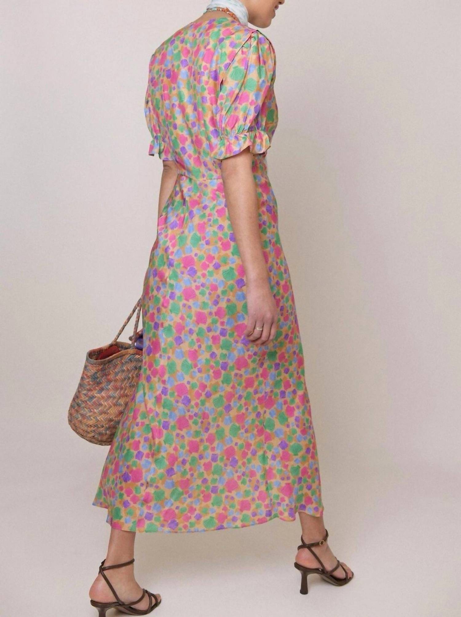 Just add slides or mules and you are good to go. Experience the vibrant charm of the Ariel Dress - Plus by RIXO in Micro Shell Mustard. This summer-ready A-line dress is crafted from 100% silk with a 100% polyester lining. Featuring short elasticized sleeves and a concealed back zip, it ensures both comfort and style with ruched detailing and ruffled trim for a maximalist touch. This vacation-ready piece requires dry cleaning for optimal care.