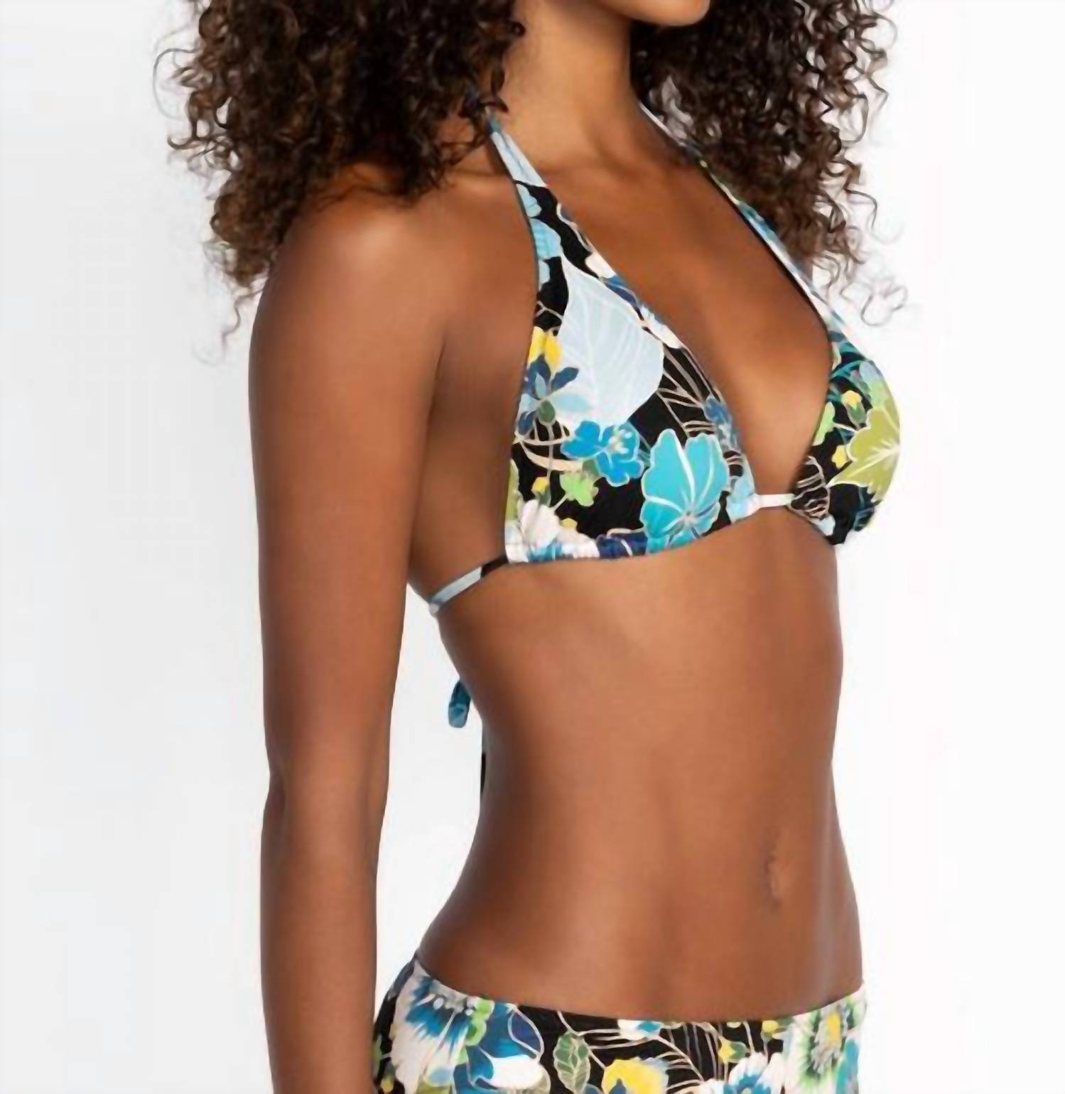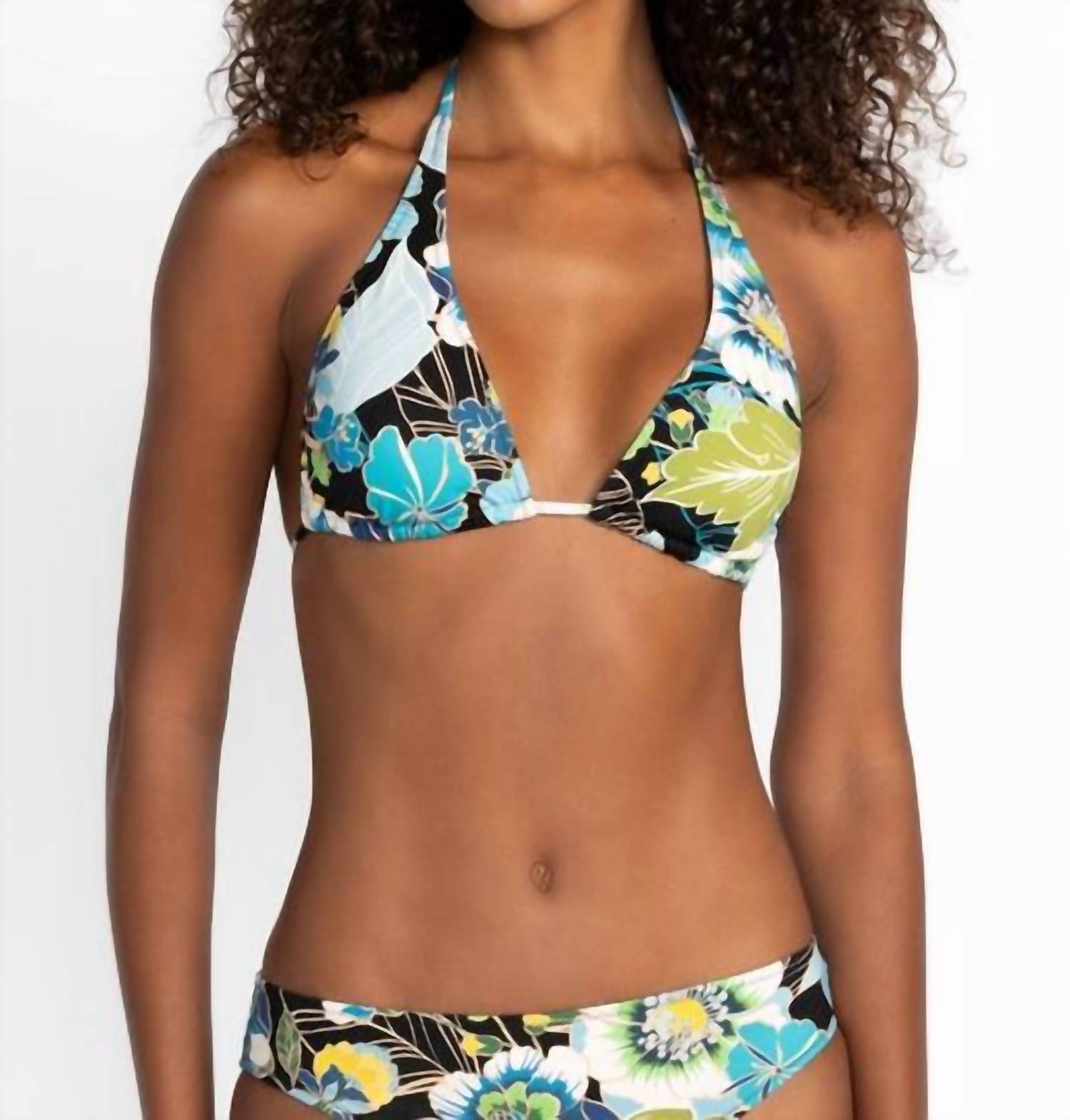 Ideal for relaxed poolside moments, this adorable swimsuit effortlessly transitions into the perfect sunset dinner outfit when paired with a flowing skirt. The Jenn String Bikini Top brings a classic swim silhouette back to life, making it perfect for poolside lounging. Featuring a lined triangle cut with removable cups, this swim top ties at both the neck and waist for a customizable fit. Pair it with the Jenn String Bikini Bottom and an open button-down shirt for a stylish day soaking up the sun. 83% Nylon 17% Elastane