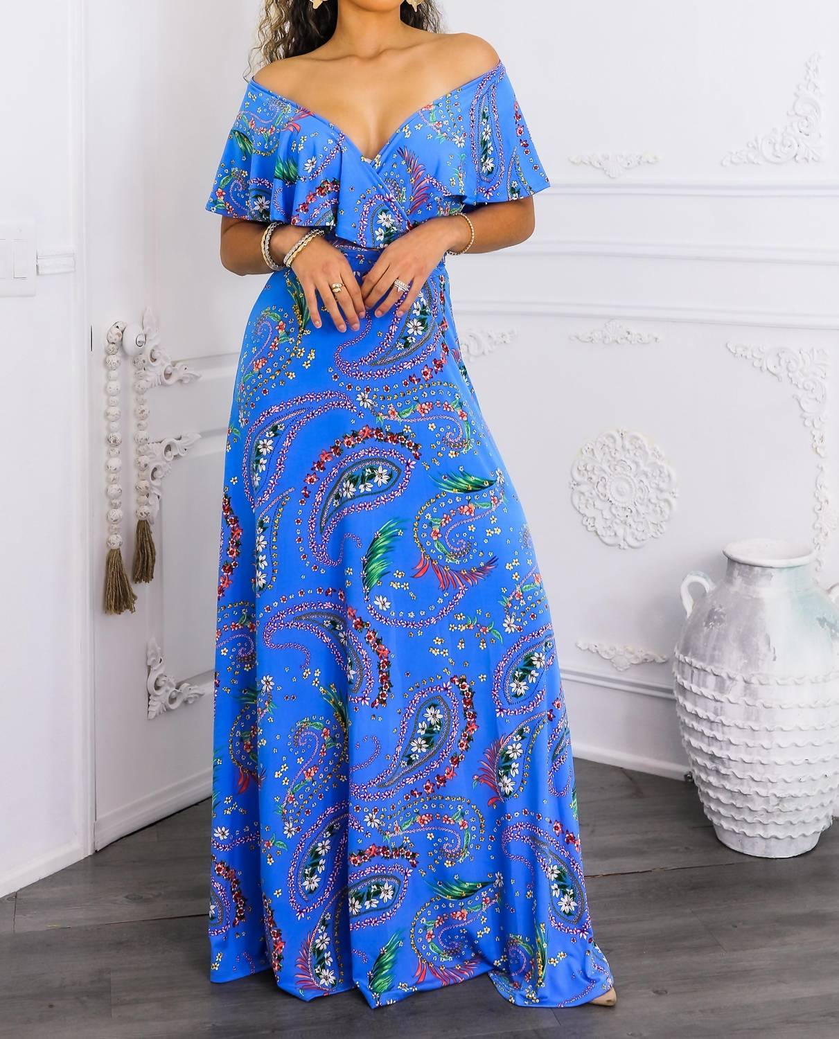 Surelymine - Paisley On Or Off-shoulder Maxi Dress