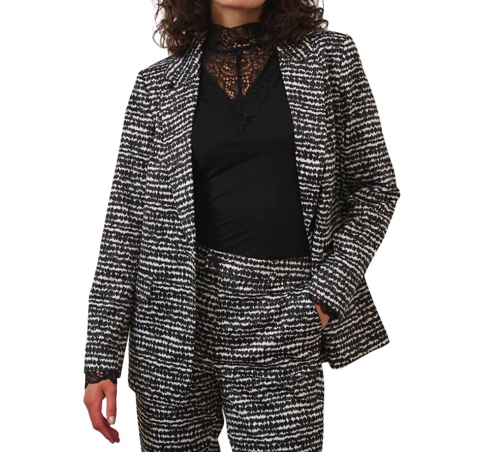 Features a notched lapel, single button front closure and style pockets. Fabric: 94% Polyester, 6% Spandex.