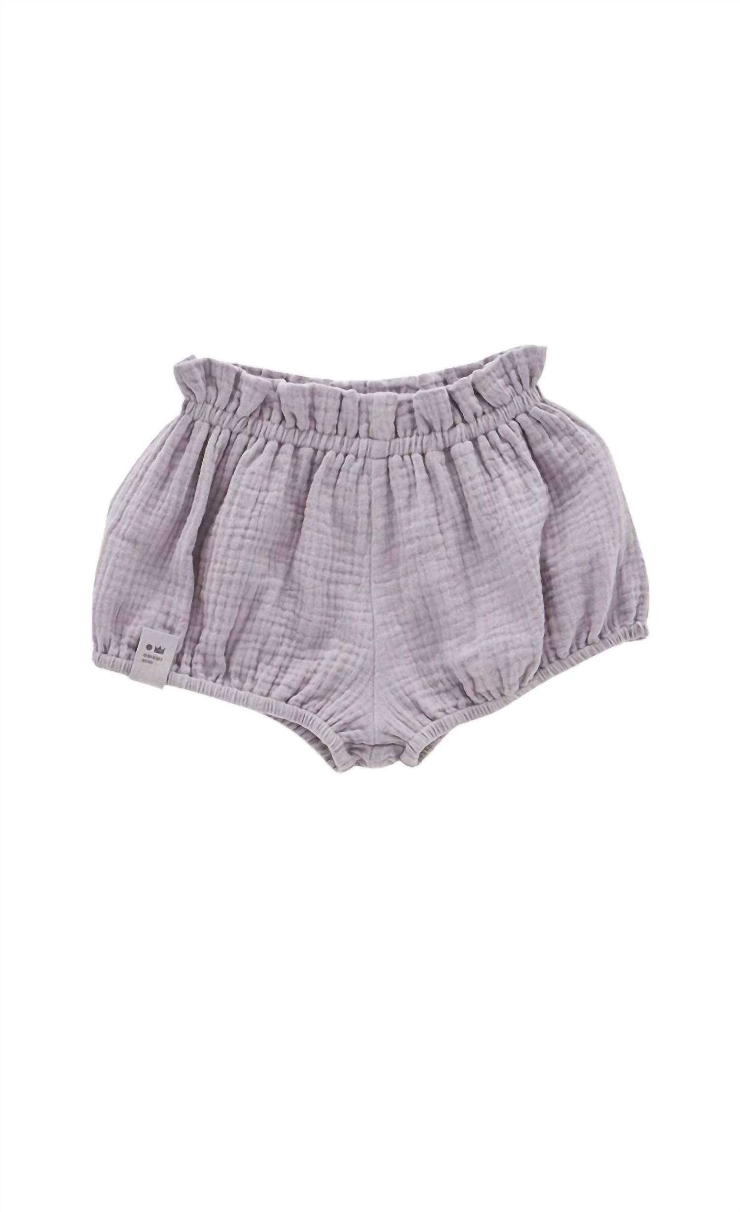 Bloomers featuring super soft washed fabric and a sweet bubble silhouette. Elasticized waist with a ruffle. Elasticized leg openings. 100% cotton gauze fabric.