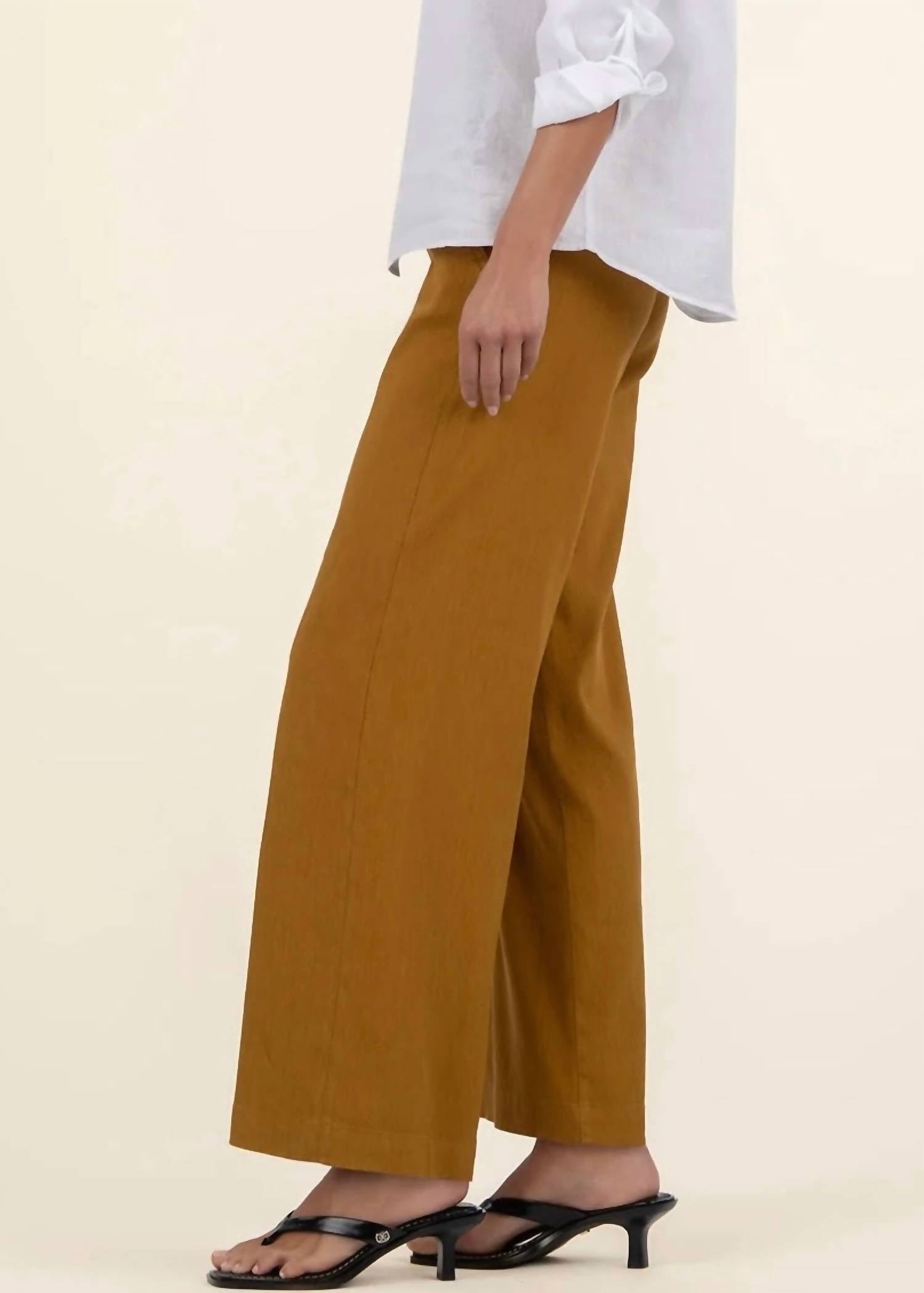 Introducing the Meg High Rise Wide Leg pants by KUT FROM THE KLOTH, your ultimate summer vacation staple. Crafted from a breezy linen blend, these pants boast a bold wide-leg silhouette and feature practical flap pockets. Composition: 50% Linen, 48% Rayon, 2% Spandex. With a flattering high-rise fit (Rise: 10.75"), an inseam of 30", and a leg opening of 23", they are both stylish and comfortable. Closure: Button closure. Care: Machine wash. Ideal for a minimalist look in a striking saffron hue.