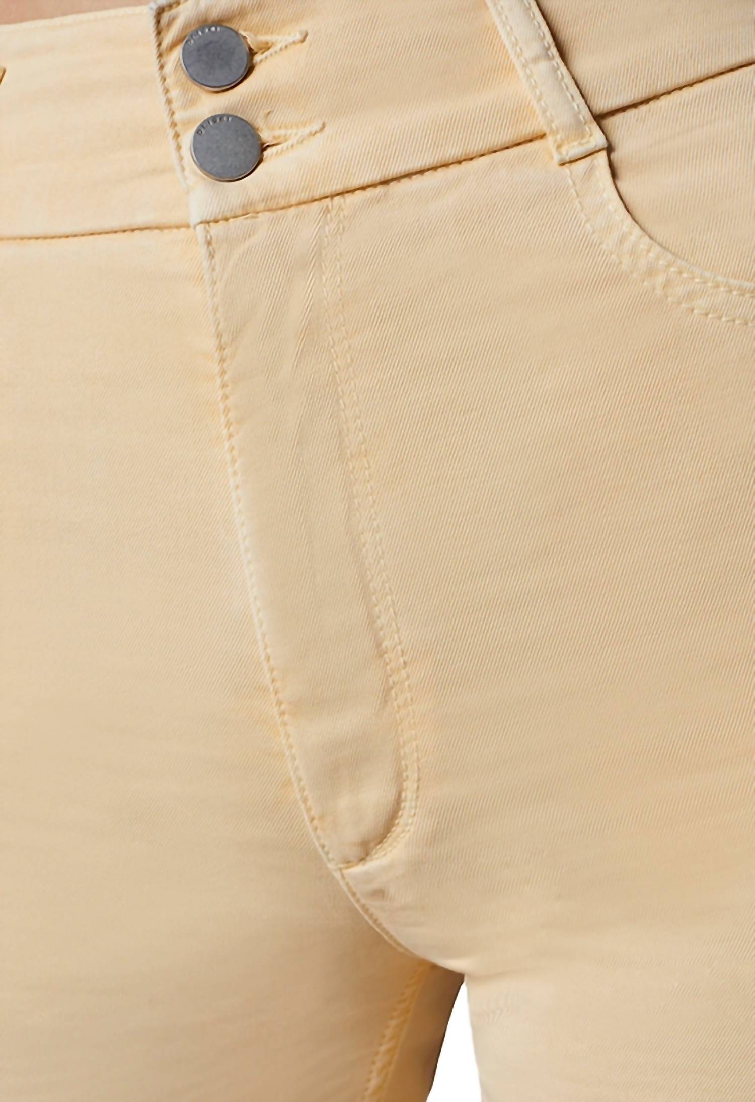 A butterscotch wash brings a fresh look to stretchy, cleanly styled wide-leg jeans that fit slim through the seat and taper to ankle-grazing hems. 27" inseam; 20" leg opening; 11 1/2" front rise. 97% cotton, 3% Lycra elastane. Machine wash, dry flat.