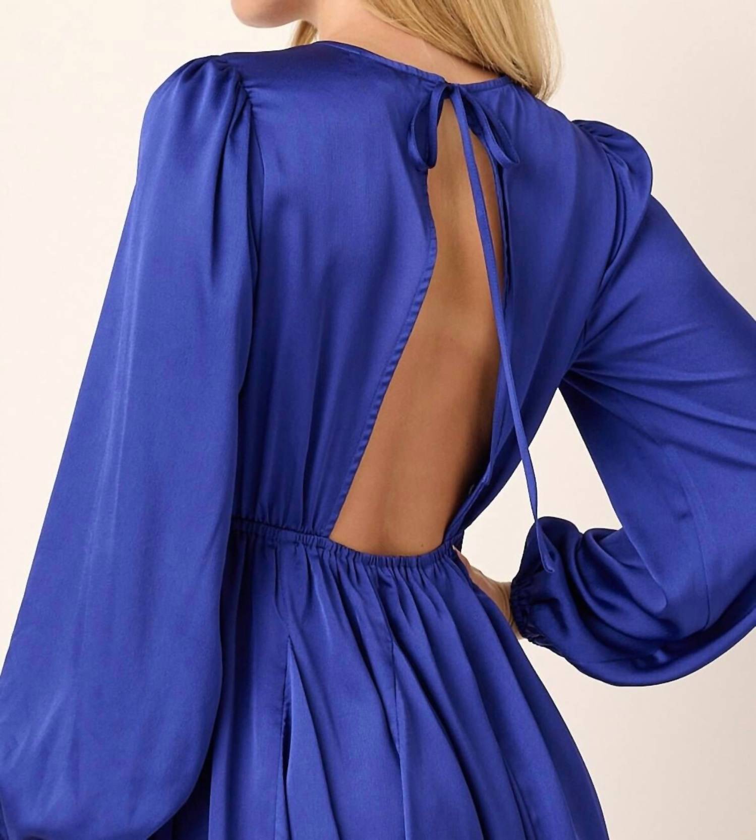 The perfect mini dress for those warmer months. Introducing the Holly Satin Dress by Mittoshop, a striking choice for any special occasion. This mini-length dress features long sleeves and a flattering crewneck, complete with a unique spaghetti tie closure at the back. Crafted from 100% polyester, its satin woven fabric enhances the solid color design. Enjoy a true-to-size fit with a godet detail skirt, easily cared for with machine wash instructions.