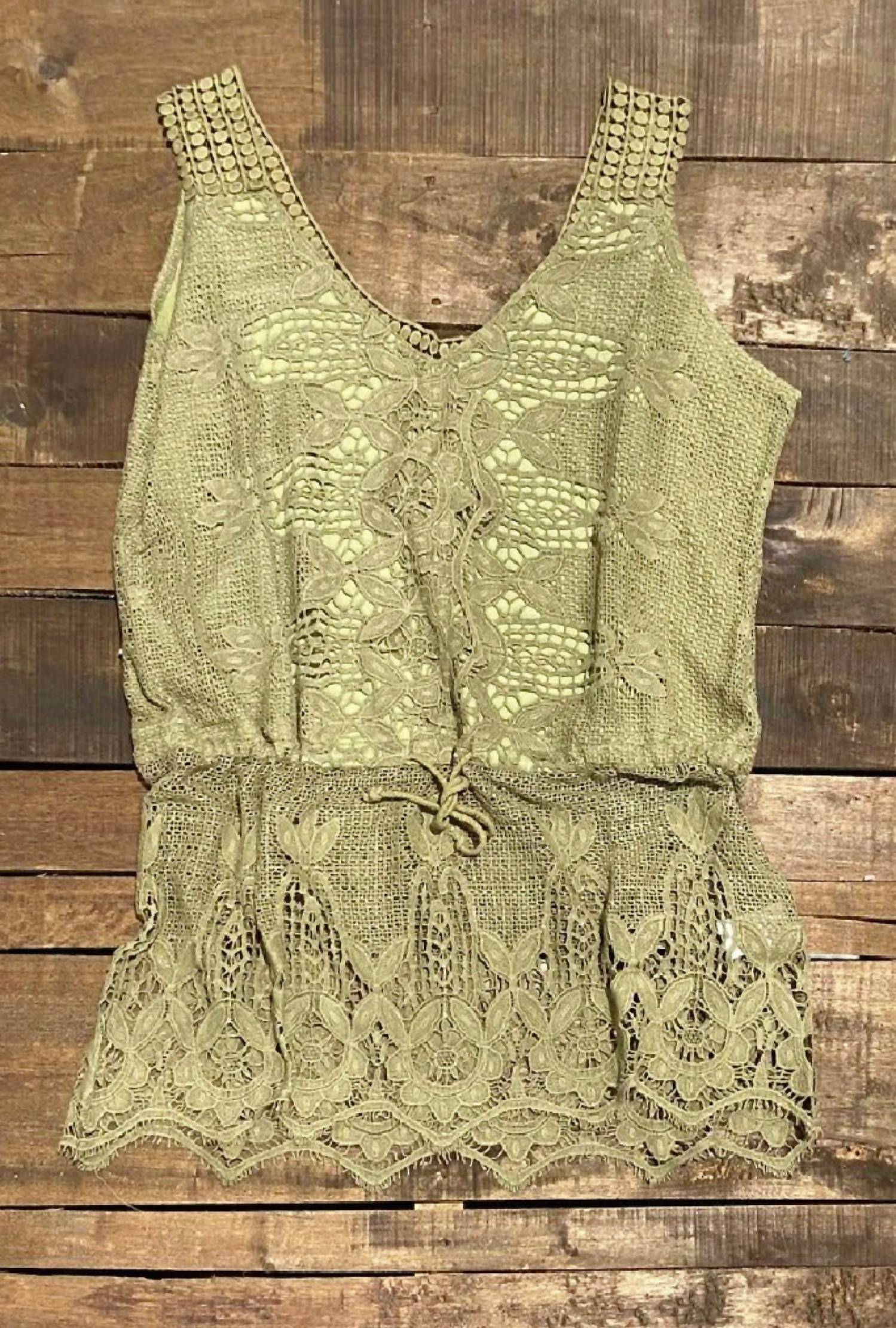 A perfect addition to any wardrobe, this classic tunic style blouse is flattering and effortless. You can easily transition from desk to dinner in this chic top. O/S: Bust 22.5" Length 33.5". Oversized. Made of a lacey tank tunic, gathered at the waist for a comfortable and romantic look - this western boho styling will keep your style game strong!