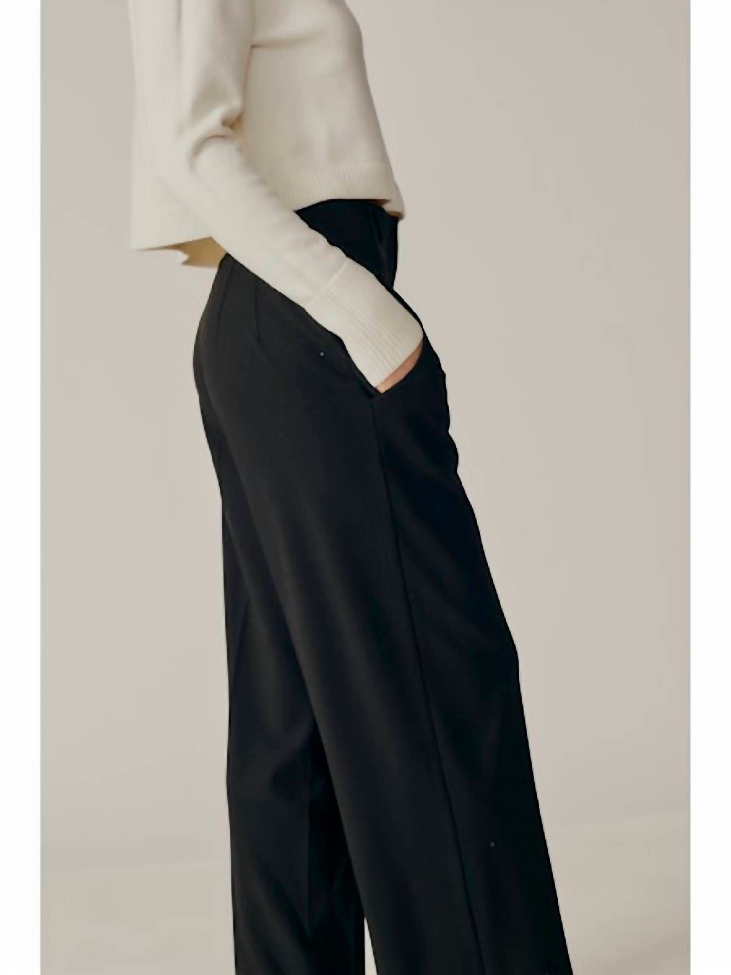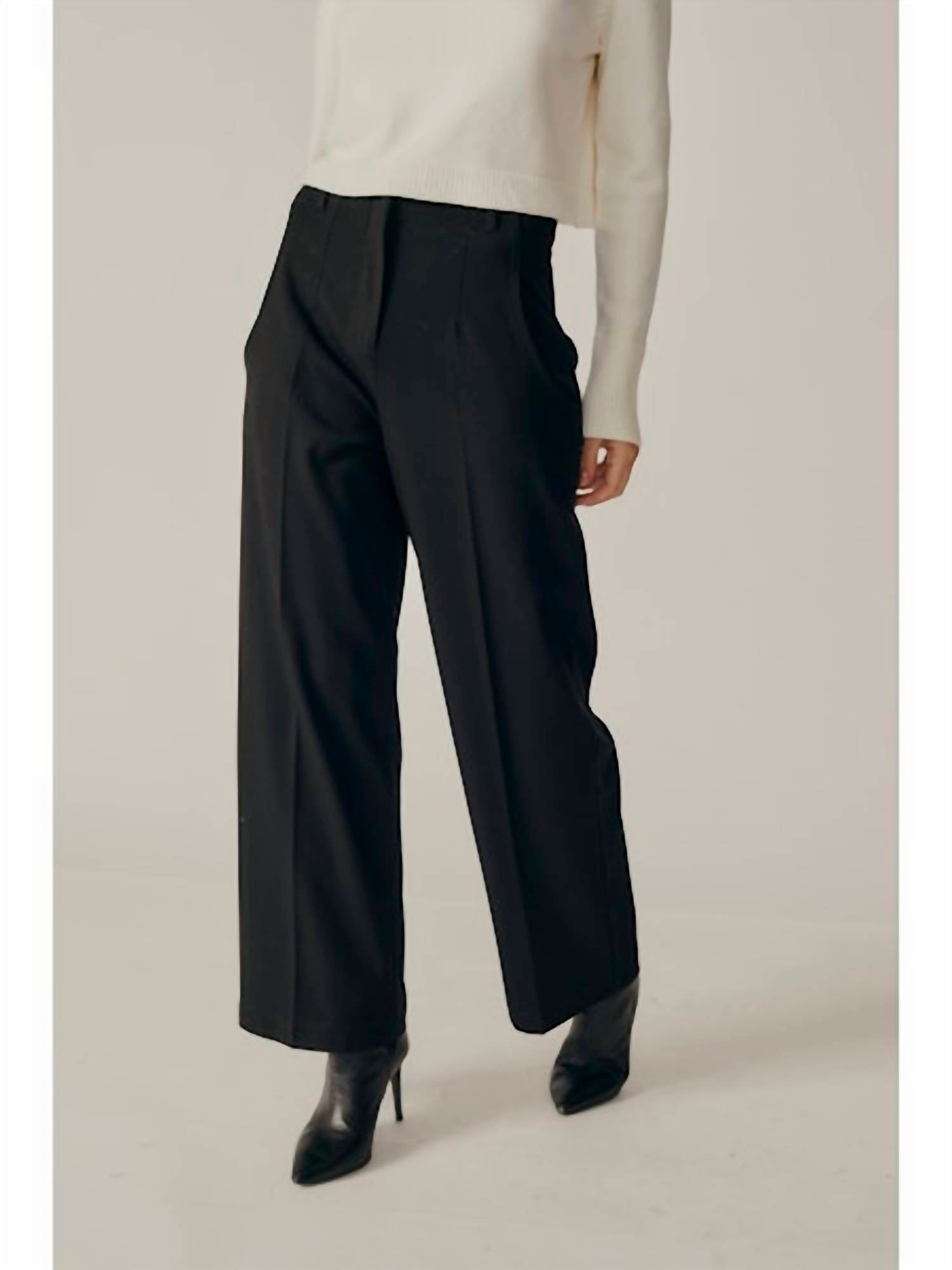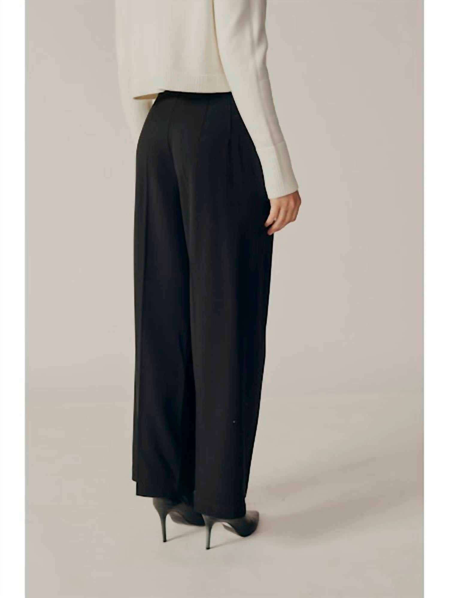 Experience both style and comfort with the DELUC Gaura Wide Leg Pants, designed with a luxurious blend of 65% Lyocell and 35% Rayon. These black high-rise pants feature a relaxed fit with wide leg styling, adorned with fashionable belt loops and convenient front pockets. A flattering pleated waistline finished with a hook and eye closure enhances their chic appeal. Care: Hand wash or opt for dry cleaning to maintain their elegance.