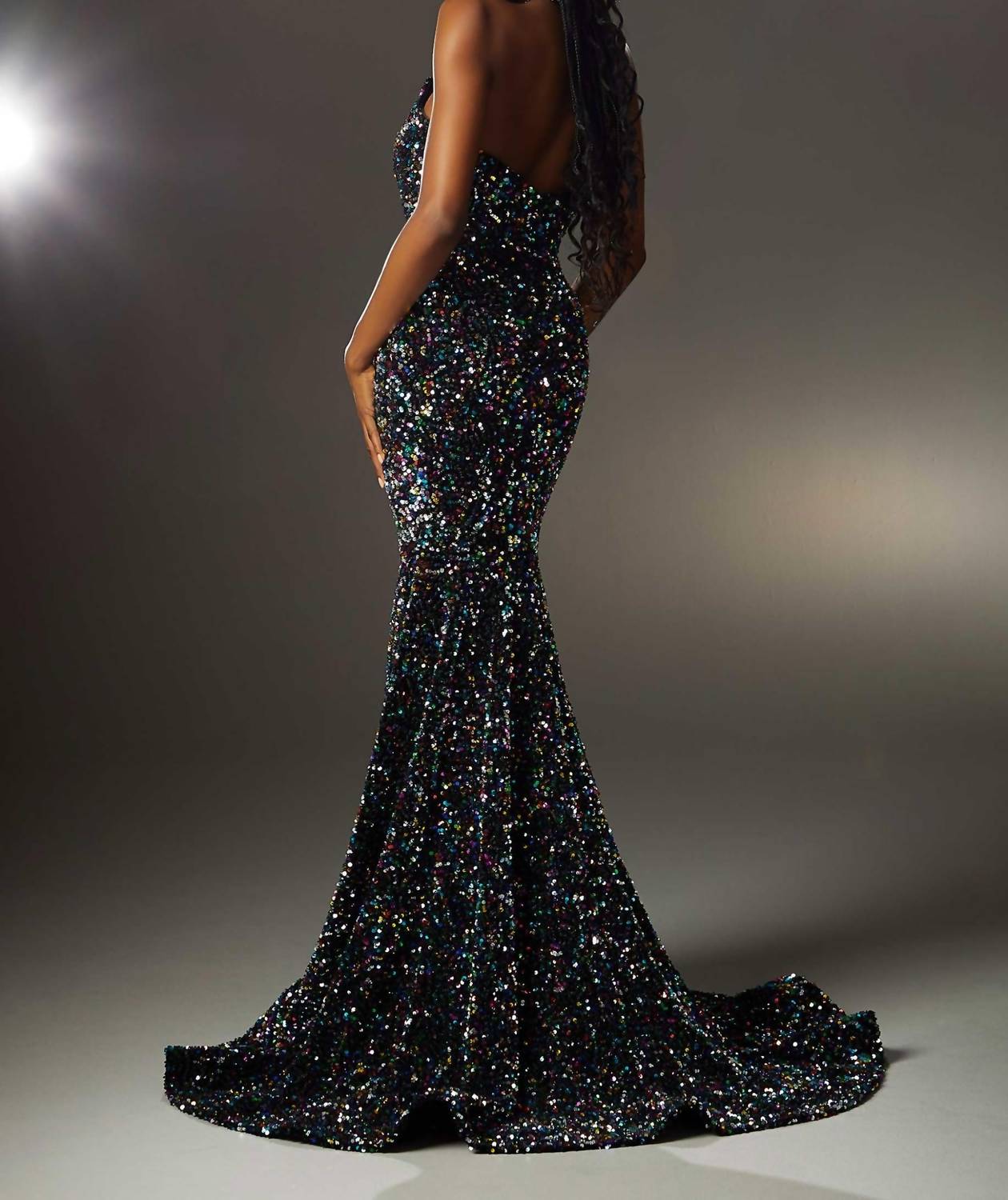 Just add a cute little clutch and a matching heel for the perfect event look. Make a statement at any event with the Confetti Sequin Velvet Prom Gown by MORILEE, a stunning choice in a vibrant Black/Multi design. This enchanting gown is strapless with an embellished texture and features a flattering V-neck and natural waistline, perfectly complementing its elegant mermaid silhouette. Crafted from luxurious velvet, it includes a dramatic train and a reliable back zip closure for ease of wear. Ideal for prom, this gown offers a touch of glamour that's truly unforgettable.