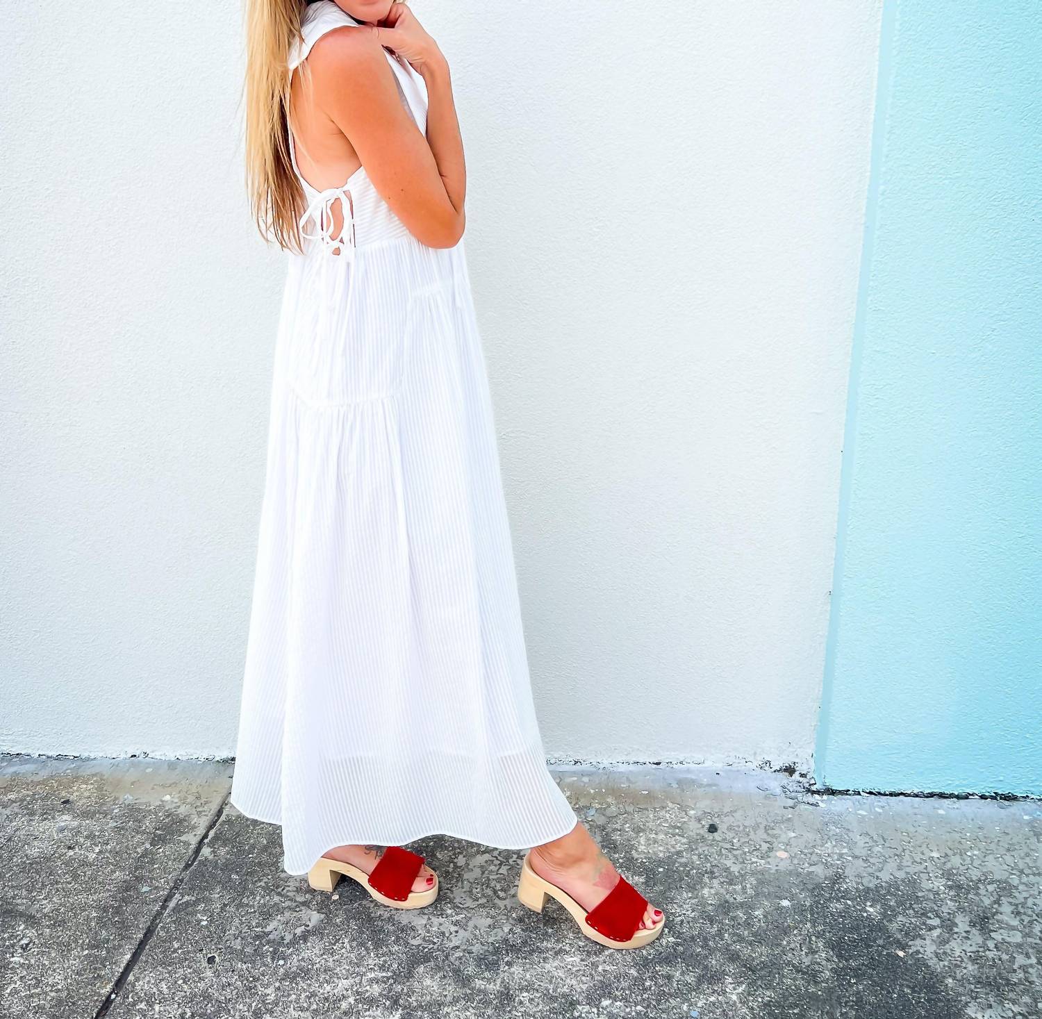 Just add slides or mules and you are good to go. Discover effortless charm with the Sunday Stroll Midi Dress by THML, designed for leisurely summer days and stylish adventures. This sleeveless dress, crafted from a 75% rayon and 25% polyester blend, features an airy A-line silhouette with a V-neck and soft collar detail, adding a touch of elegance. Embrace the practicality with hidden pockets and side ties, allowing you to cinch or leave it breezy. With a pull-on closure and machine washable fabric, summer dressing has never been easier.