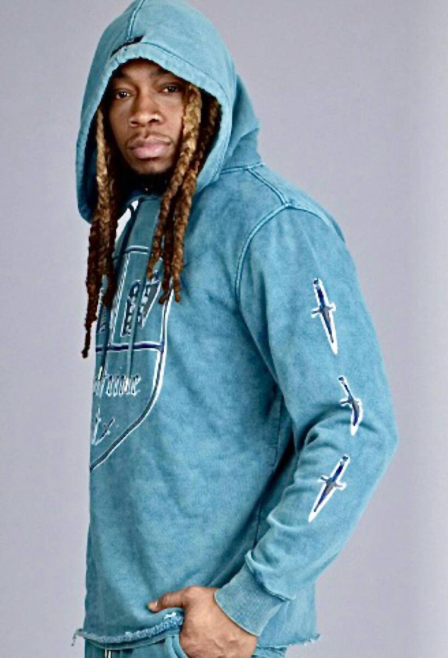 Stay warm and stylish this fall with the Doctrine Coat of Arms Hoodie in Crystal Teal, designed for those who love streetwear. With long sleeves and a hooded neckline, this cotton blend hoodie features a raw cut hem and HD digital graphic print for added flair. Enjoy the cozy comfort of the fleece material, ensuring you’ll look good while staying warm during concerts or casual outings. Crafted without pockets for a sleek finish, it uses a tie closure for easy wear. Machine wash. 80% Cotton, 20% Polyester.