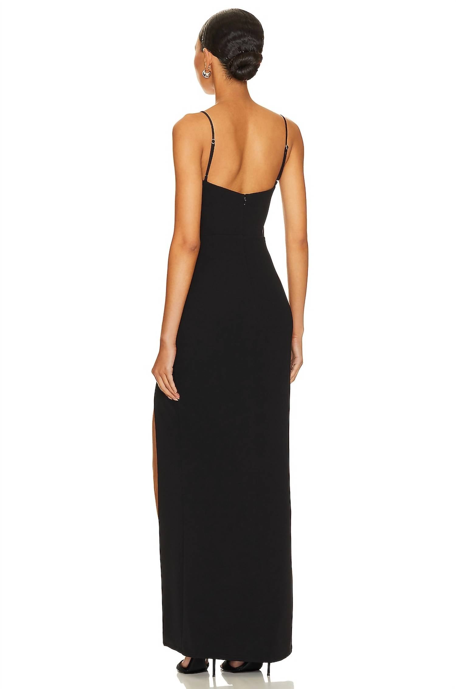 A maxi dress that is just as cute as it is comfortable. Crafted from a soft and stretchy blend of 98% polyester and 2% spandex, with a 100% polyester lining, this fully lined piece offers comfort and style. It features adjustable shoulder straps, a hidden back zipper closure, and is made from midweight jersey fabric with a side seam slit for ease of movement. Dry clean only.