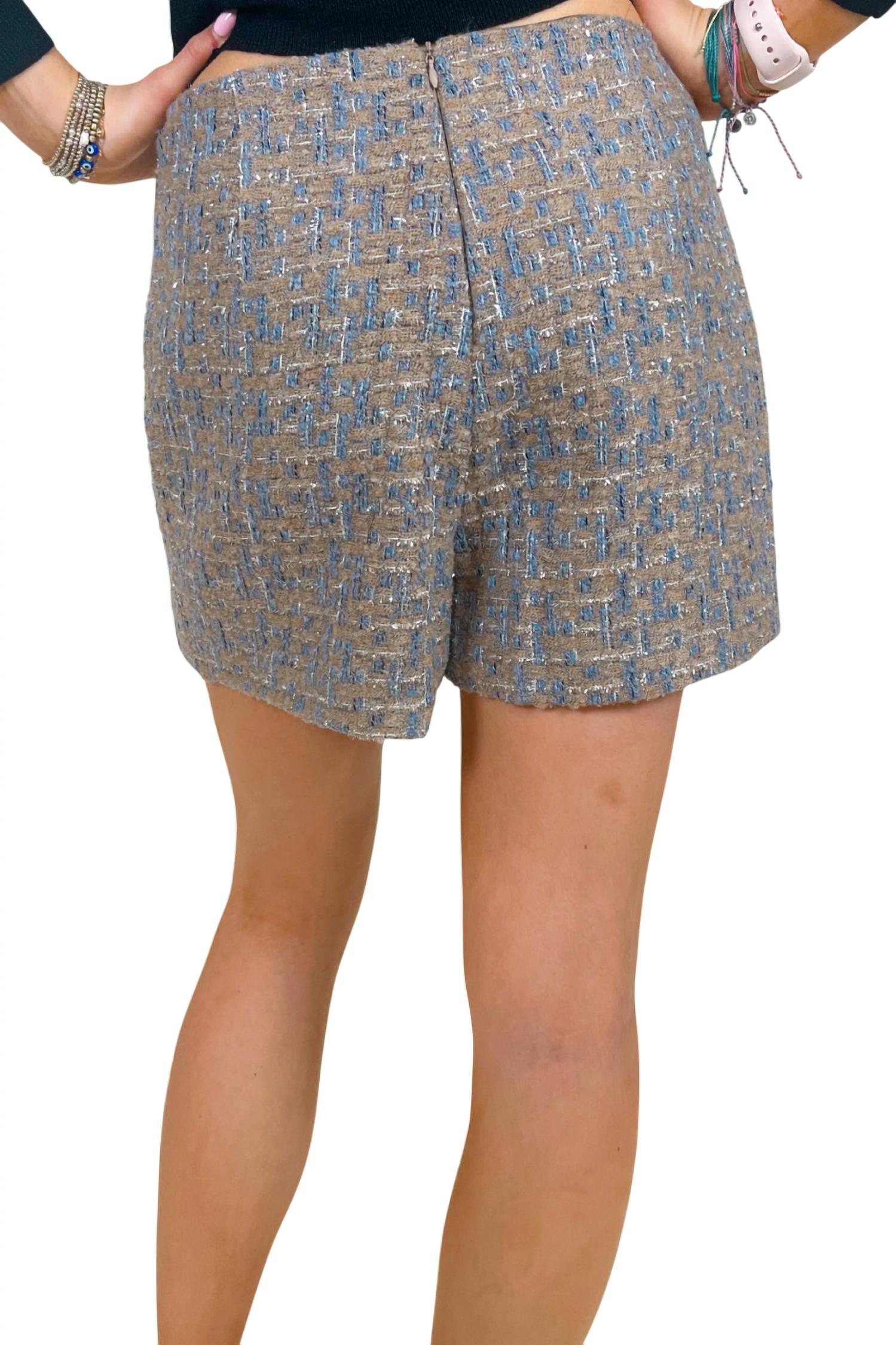 A skirt that you can do just about anything in? We love a good skort, especially this one! Enhance your Thanksgiving ensemble with the Mado Tweed Mini Skort by LUCY PARIS, perfect for both work and social outings. This skort is crafted with 95% Polyester and 5% other fibers, featuring a textured pattern in Grey Multi for a modern preppy look. Closure is ensured with a discreet back invisible zipper. Care is simple with dry cleaning recommended. Model is wearing a size XS.
