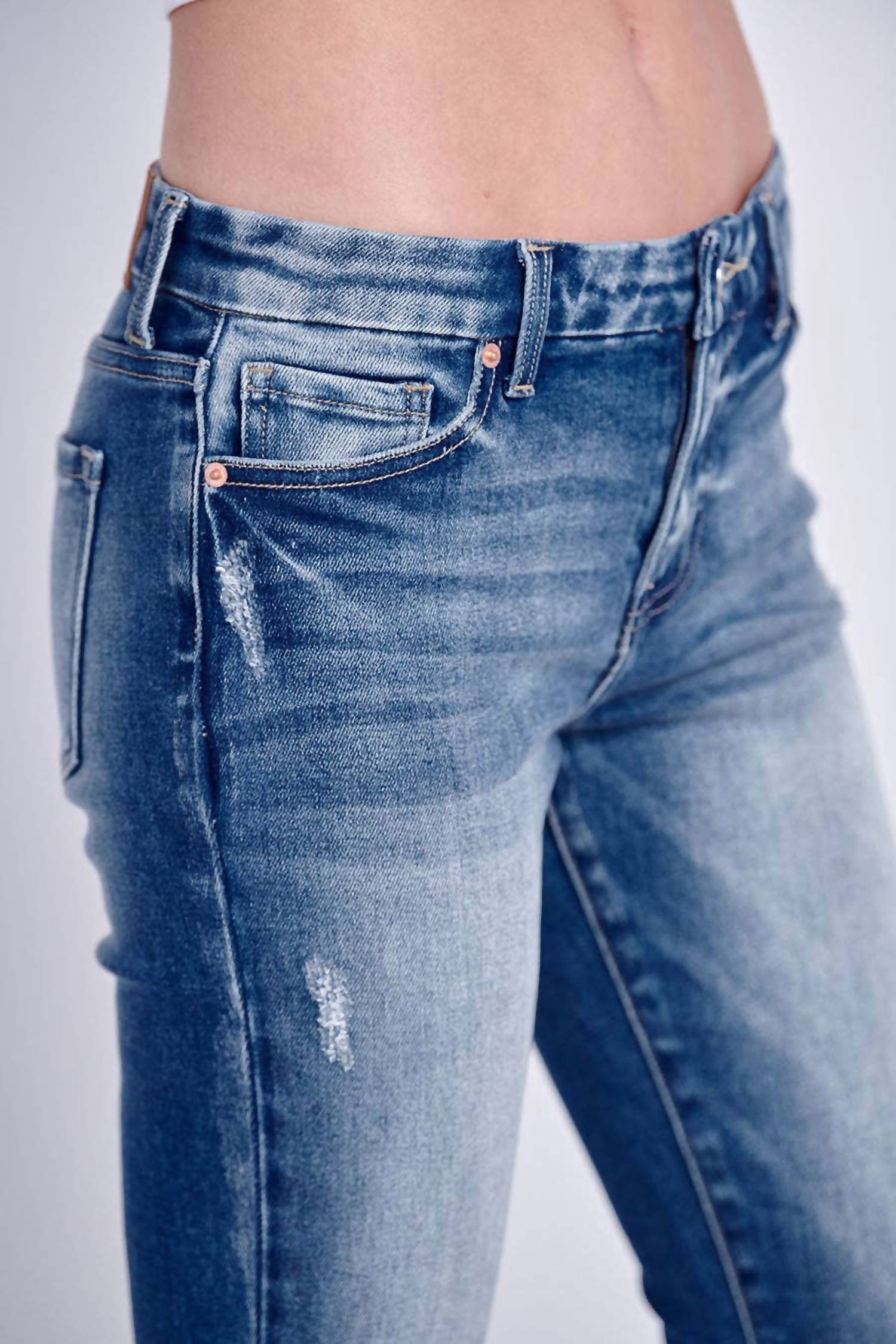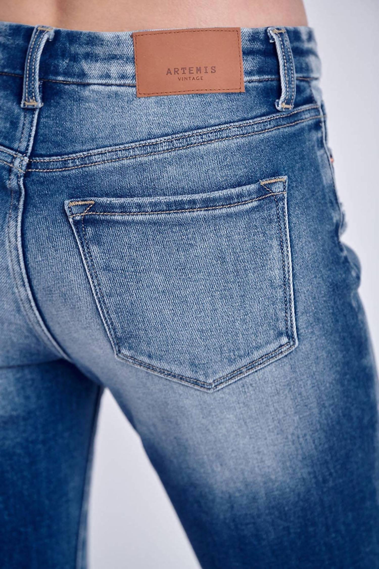 The perfect cropped jean for those transitional seasons. Discover the Women's Frayed Hem Jeans by Artemis Vintage, perfect for your streetwear summer wardrobe. Expertly crafted from stretch denim, these high-rise jeans come in a flattering medium stone wash with a classic zip closure. Featuring a frayed hem for added texture, they offer a classic fit with a flared leg, making them ideal for casual vacations. With a front rise of 10 inches, an inseam of 25.5 inches, and a leg opening of 18 inches, these jeans ensure both style and comfort.