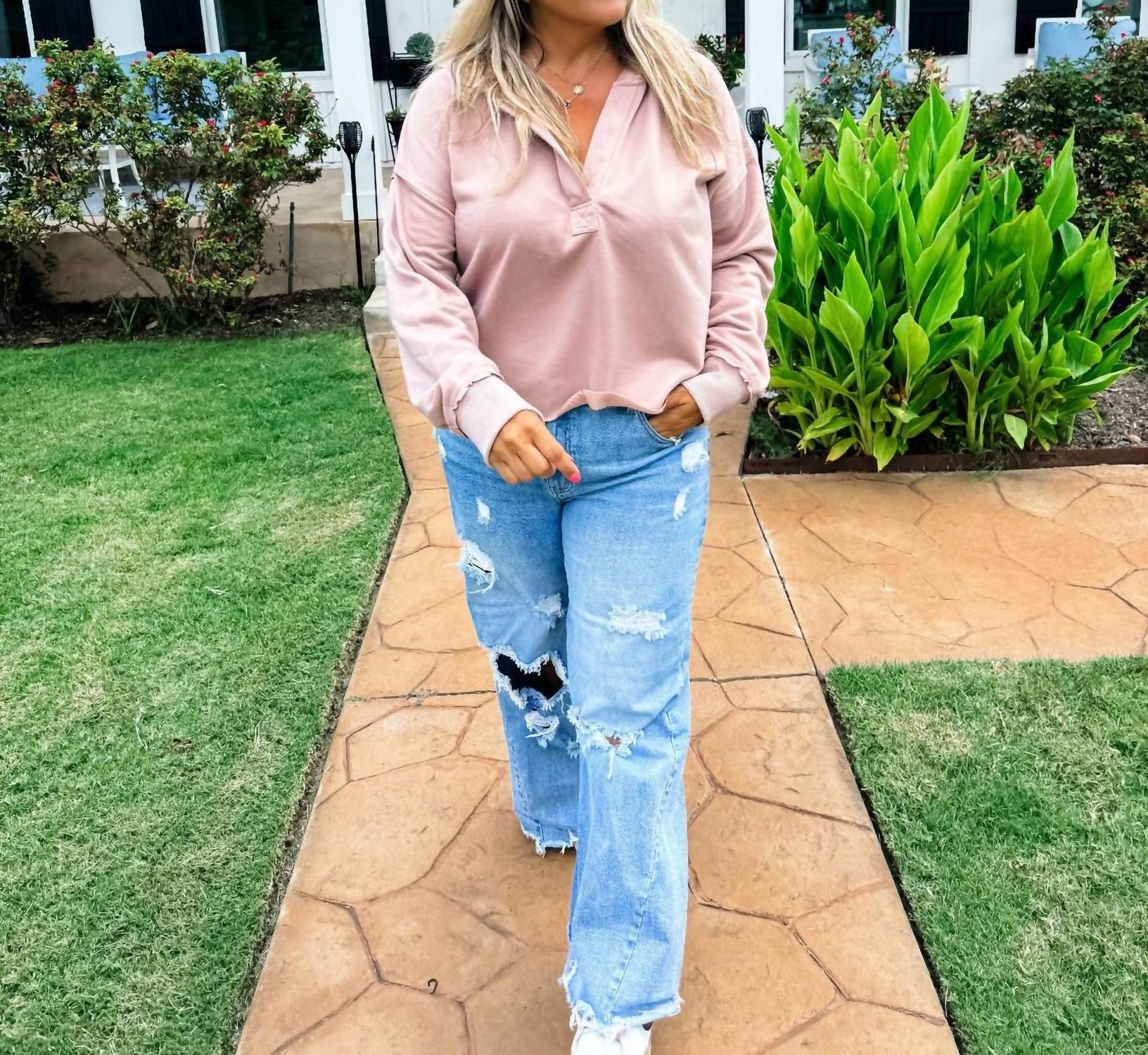 A timeless v-neck sweater that works season after season. The Rowan Raw Hem Hoodie by Blakely is a stylish fall staple perfect for travel and thanksgiving celebrations. This long sleeve, mocha hoodie features a slouchy, oversized fit with a trendy raw hem crop and a v-neckline. Crafted from soft polyester, it offers a comfortable pull-on style with exposed seams and ribbed cuffs for a modern streetwear look. Suitable for casual outings, this solid-patterned piece effortlessly combines comfort and trendiness.